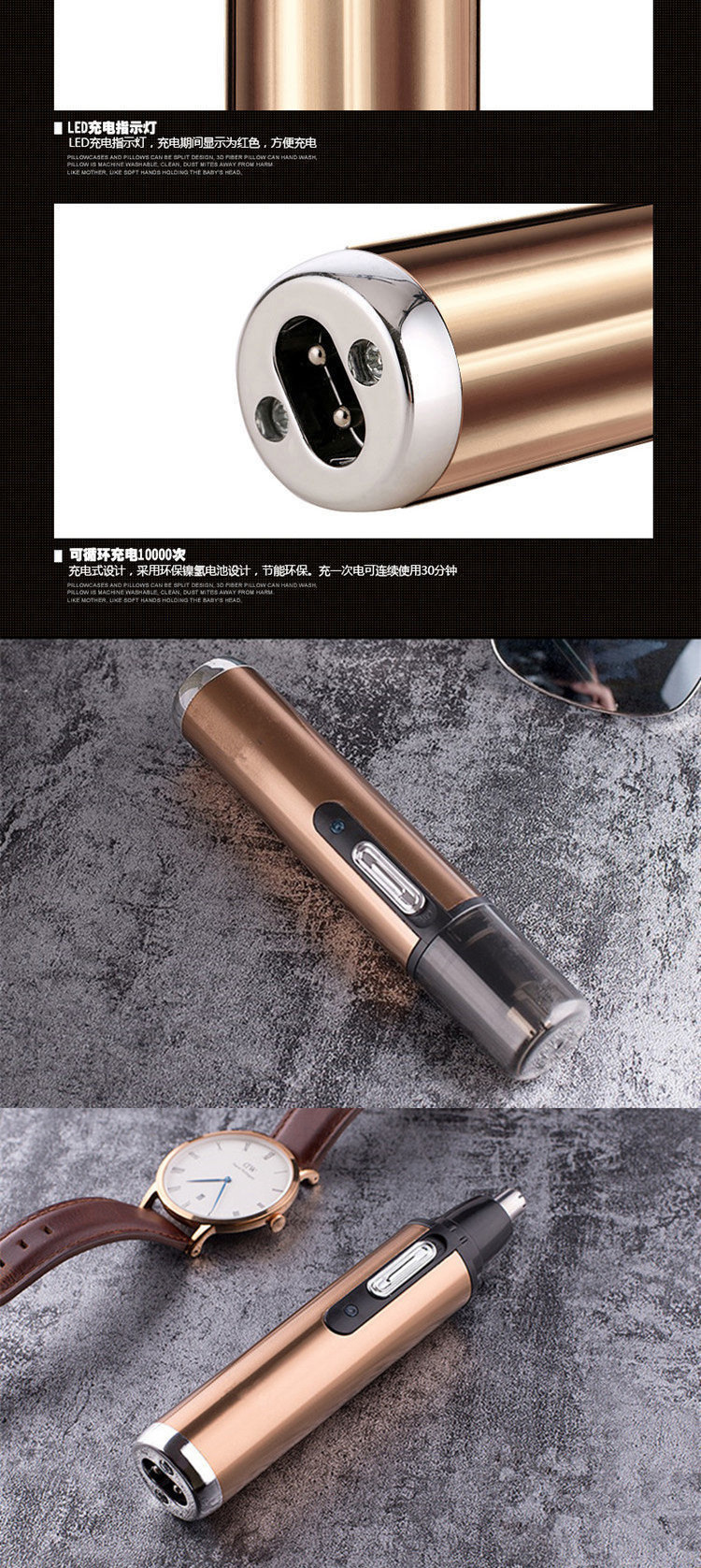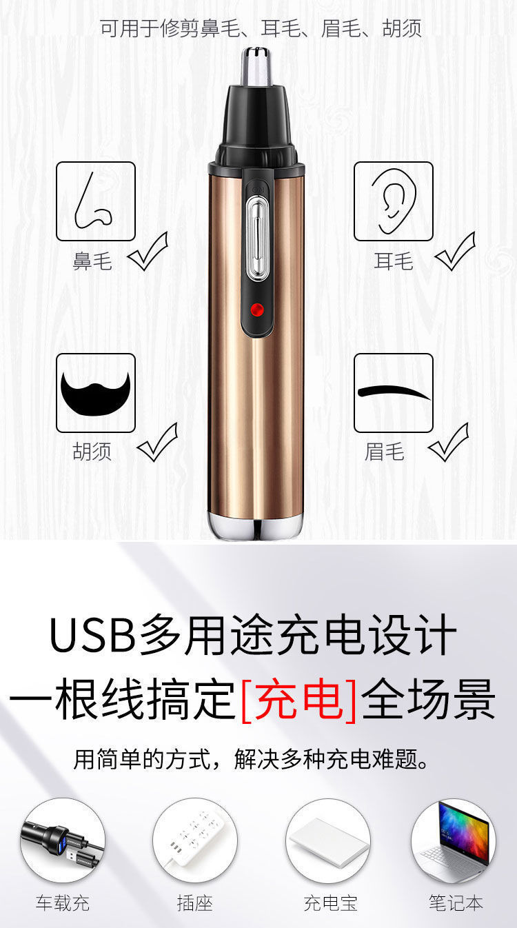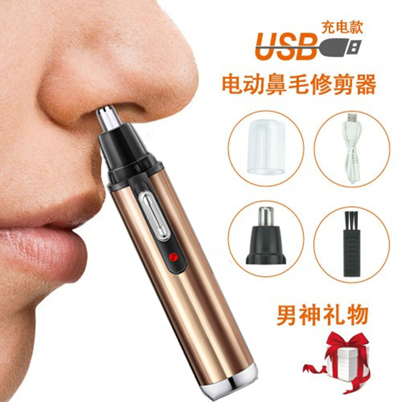 국경 간 전기 코 헤어 트리머 모든 금속 알루미늄 튜브 바디 USB 충전식 코 트리머 면도 사이드 번 헤어 커터스토어 가기