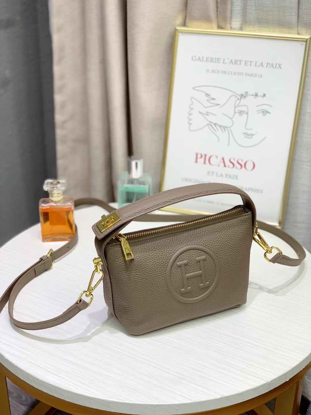 새로운 도시락 가방 크로스 보더 정품 가죽 여성 가방 다기능 휴대용 어깨 크로스 바디 대용량 H 자형 만두 백 TOGO스토어 가기