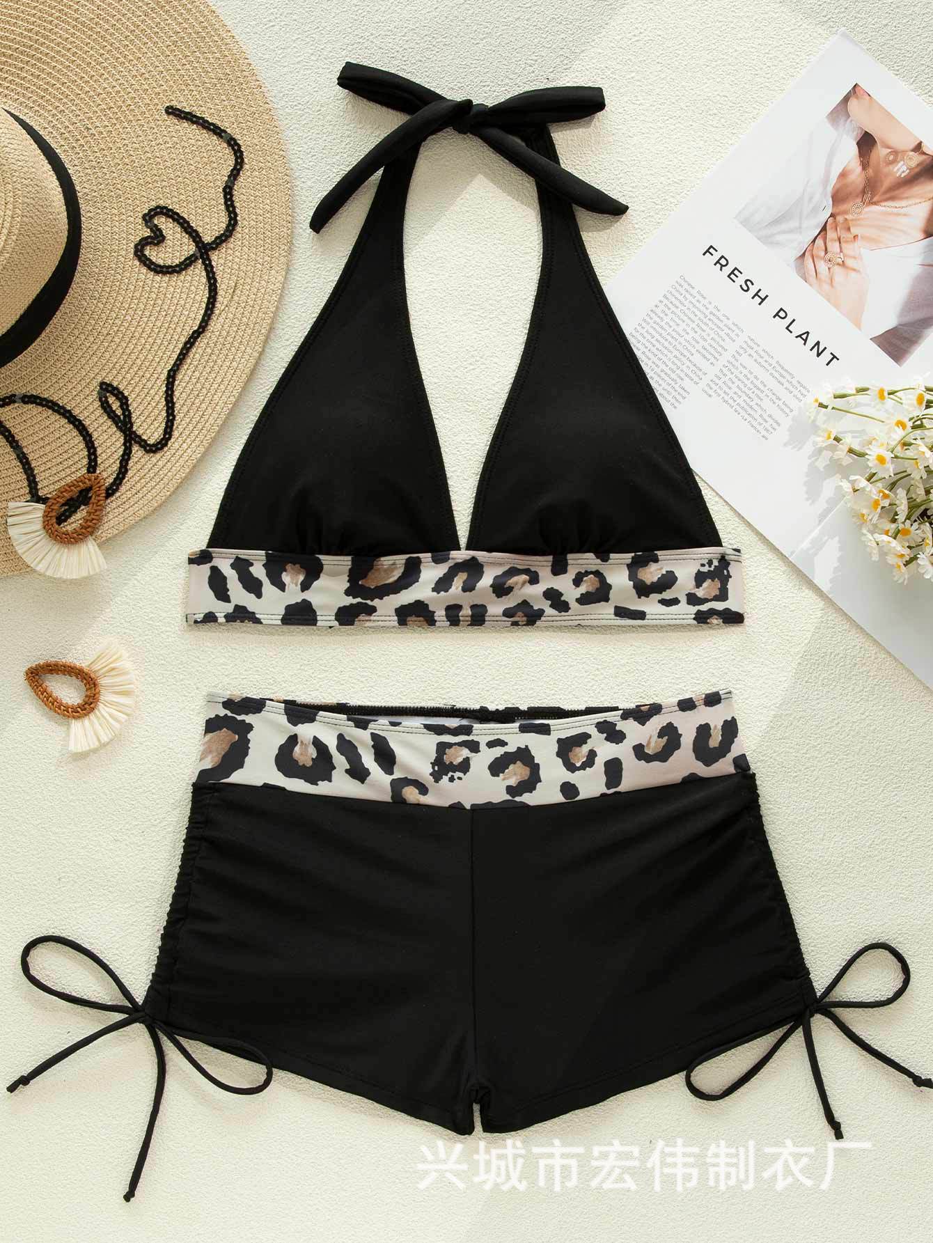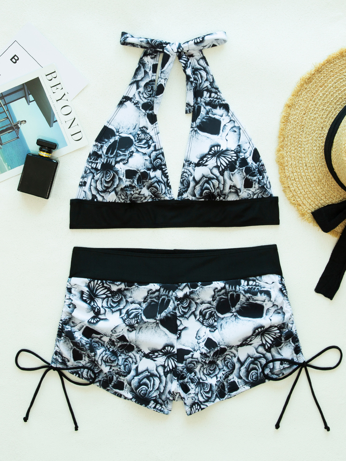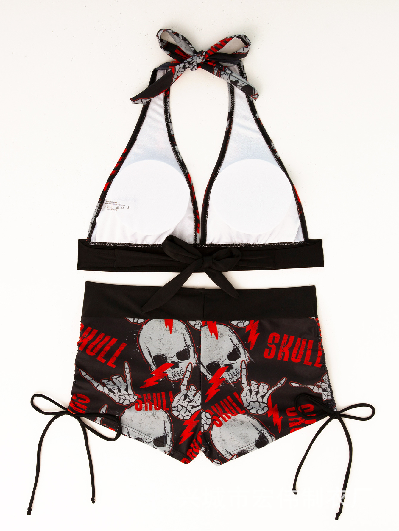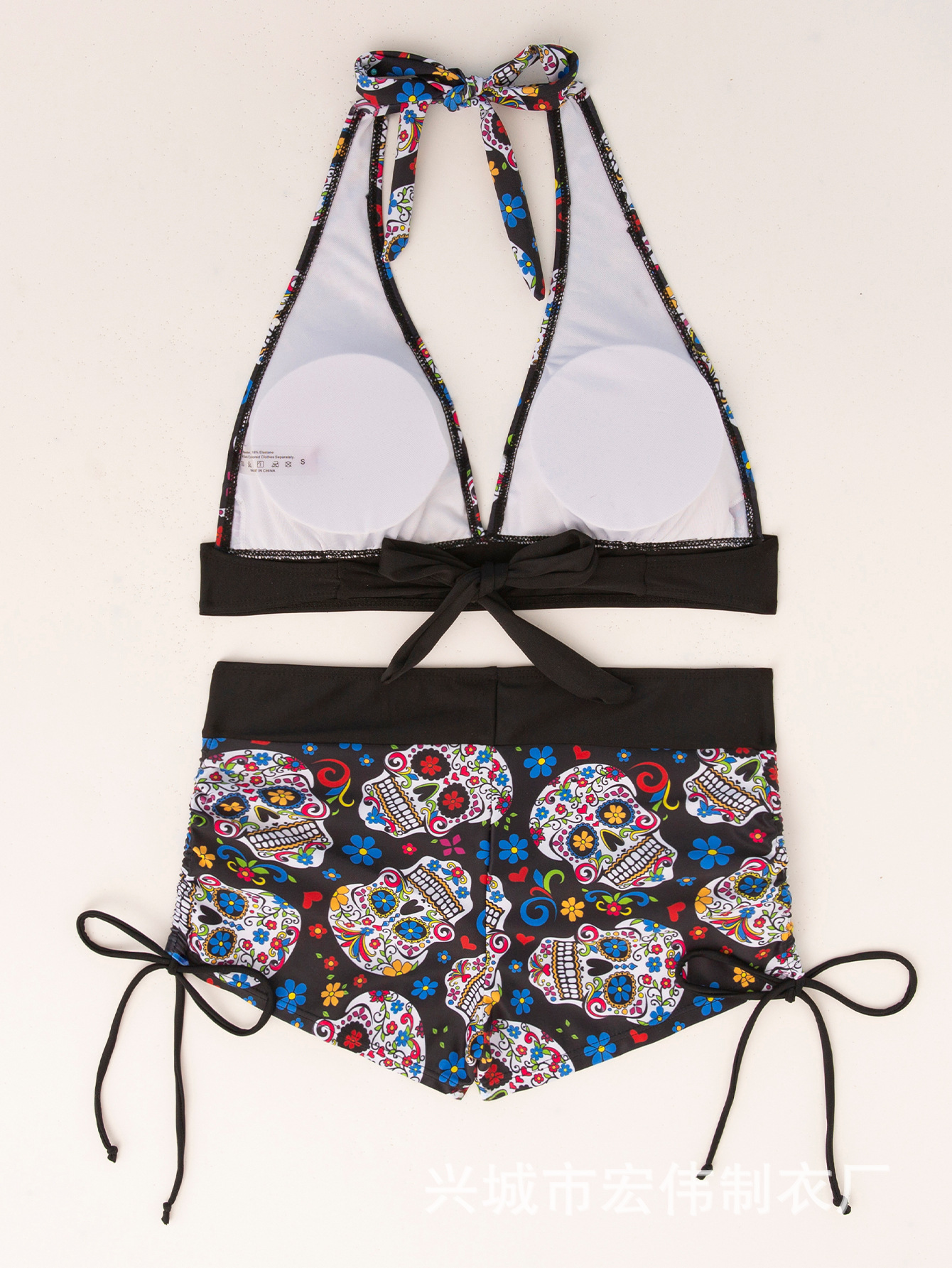 2025 새로운 유럽 및 미국 스타일 목 상자 수영복 비키니 보수적 인 두개골 인쇄 수영복 아마존스토어 가기