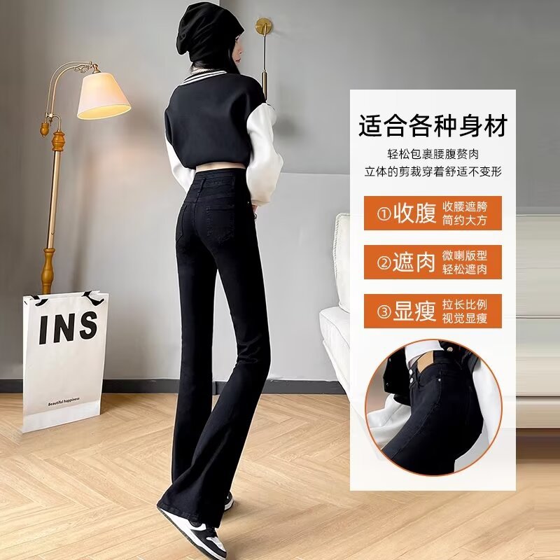 꽃 무늬 바지 여성용 높은 허리 슬림 핏 2024 새로운 봄과 가을 슬림 핏 말굽 9 점 작은 검은 스키니 청바지스토어 가기