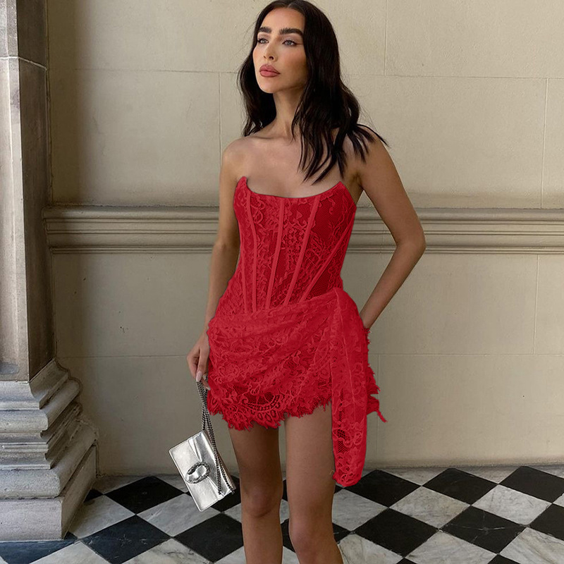 아마존 2025 가을 신상 여성 섹시 레이스 메쉬 원숄더 튜브탑 약간 비침 있는 슬림핏 원피스스토어 가기