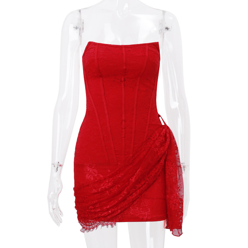 아마존 2025 가을 신상 여성 섹시 레이스 메쉬 원숄더 튜브탑 약간 비침 있는 슬림핏 원피스