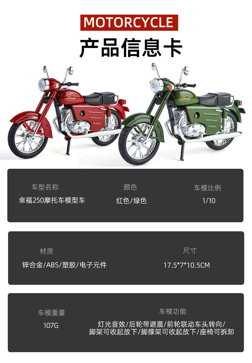 1:10 행복 250 합금 오토바이 복고풍 향수 시뮬레이션 70 s 도매 세대스토어 가기
