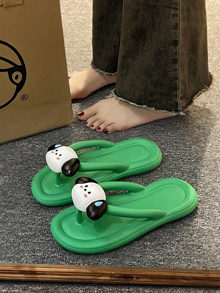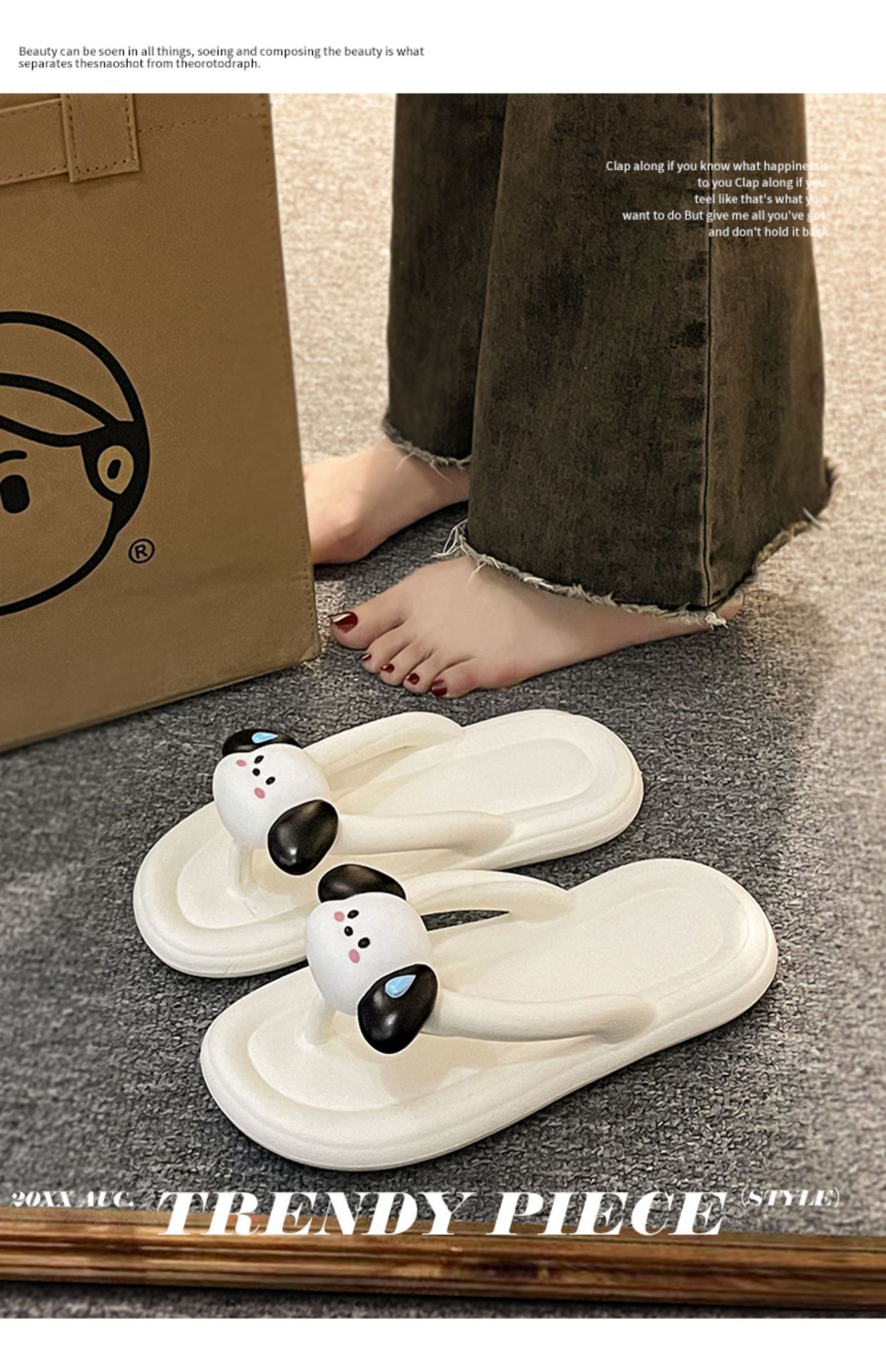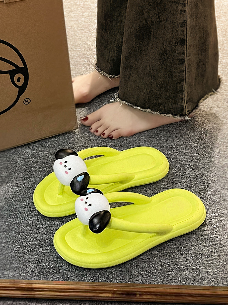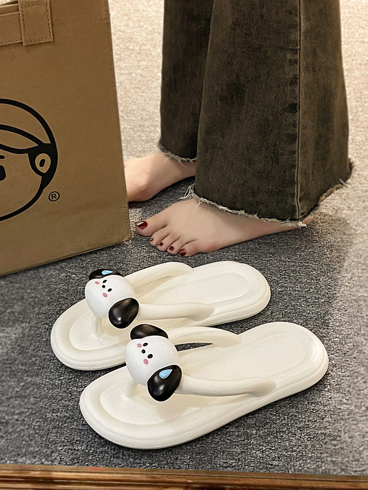 평면 플립 플롭 여성의 2024 여름 귀여운 강아지 실내 및 실외 여성용 미끄럼 방지 샌들 샌들