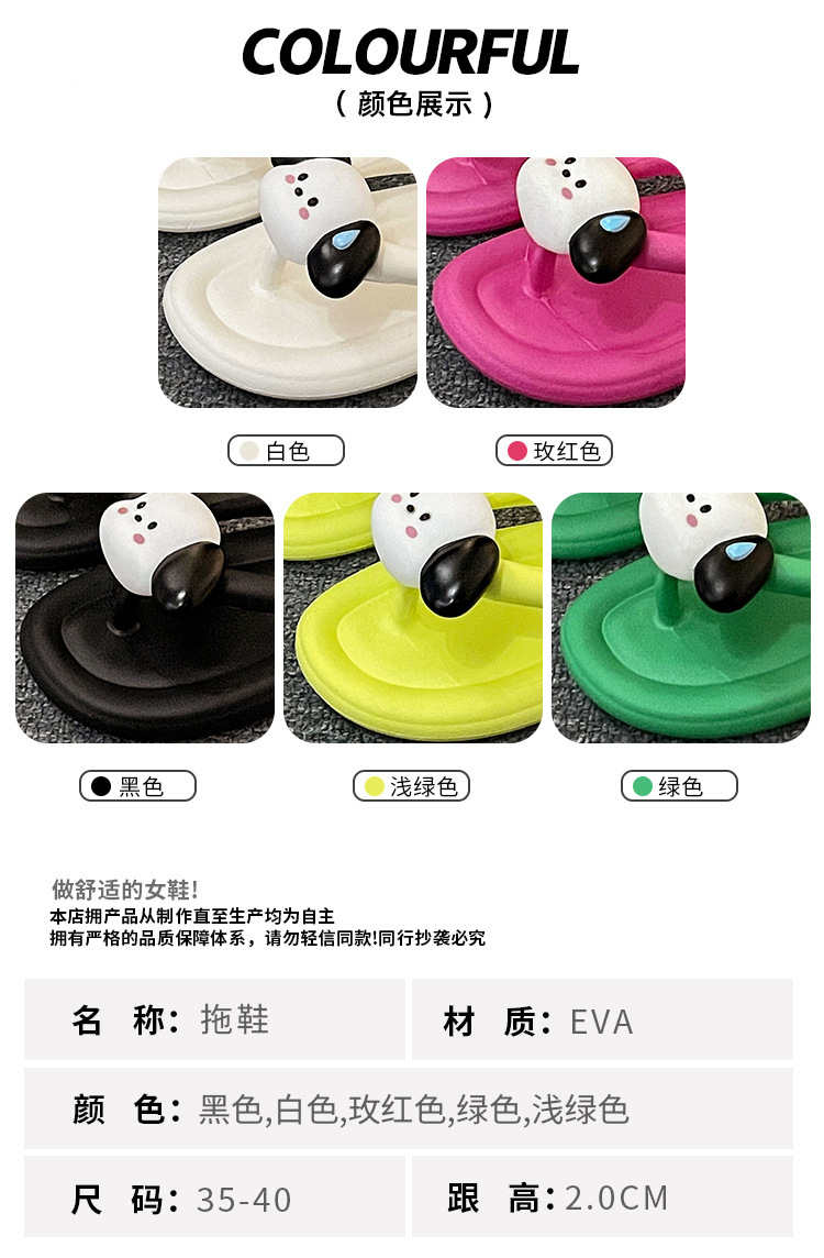 평면 플립 플롭 여성의 2024 여름 귀여운 강아지 실내 및 실외 여성용 미끄럼 방지 샌들 샌들스토어 가기