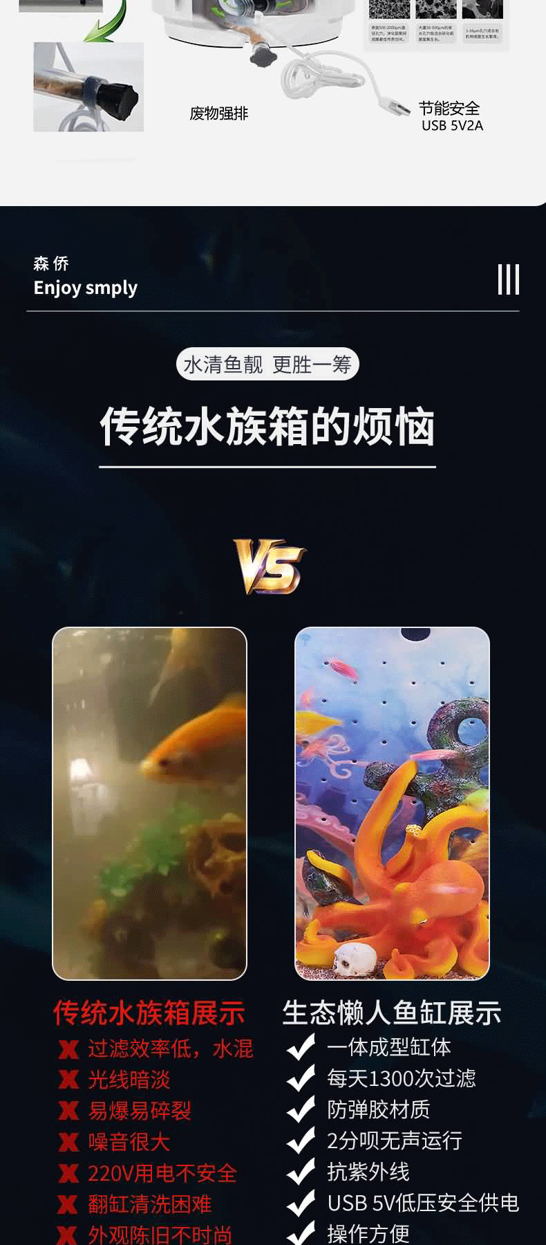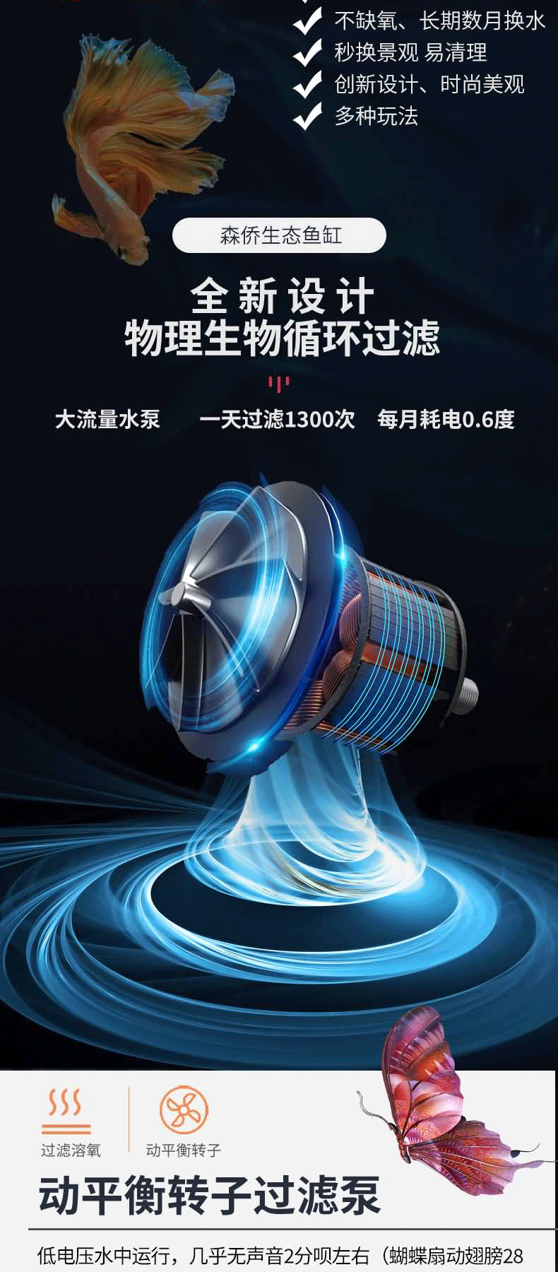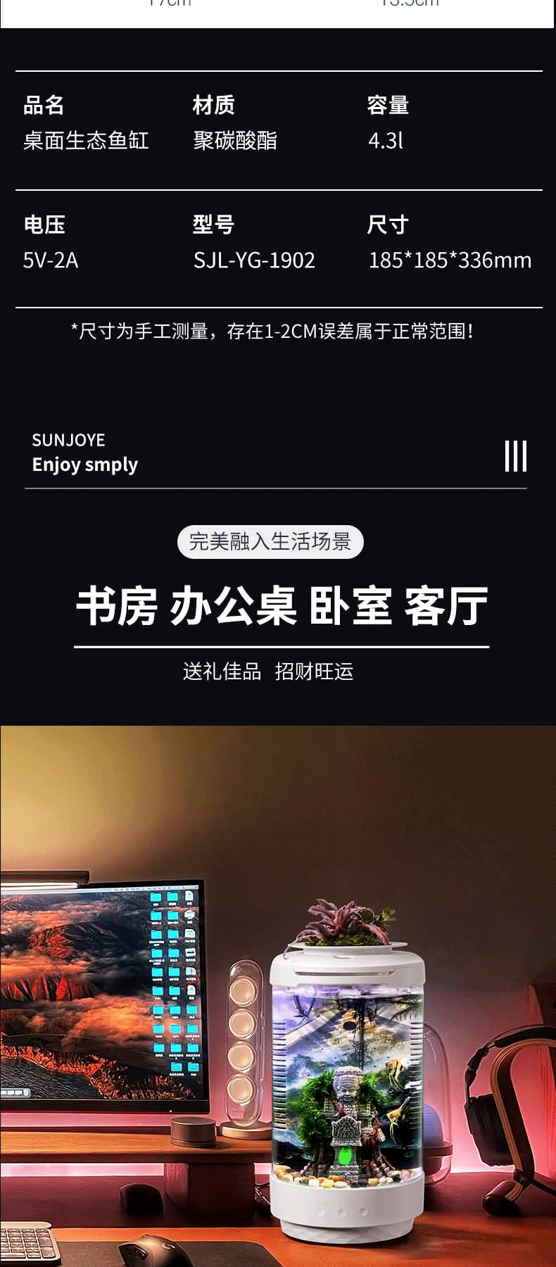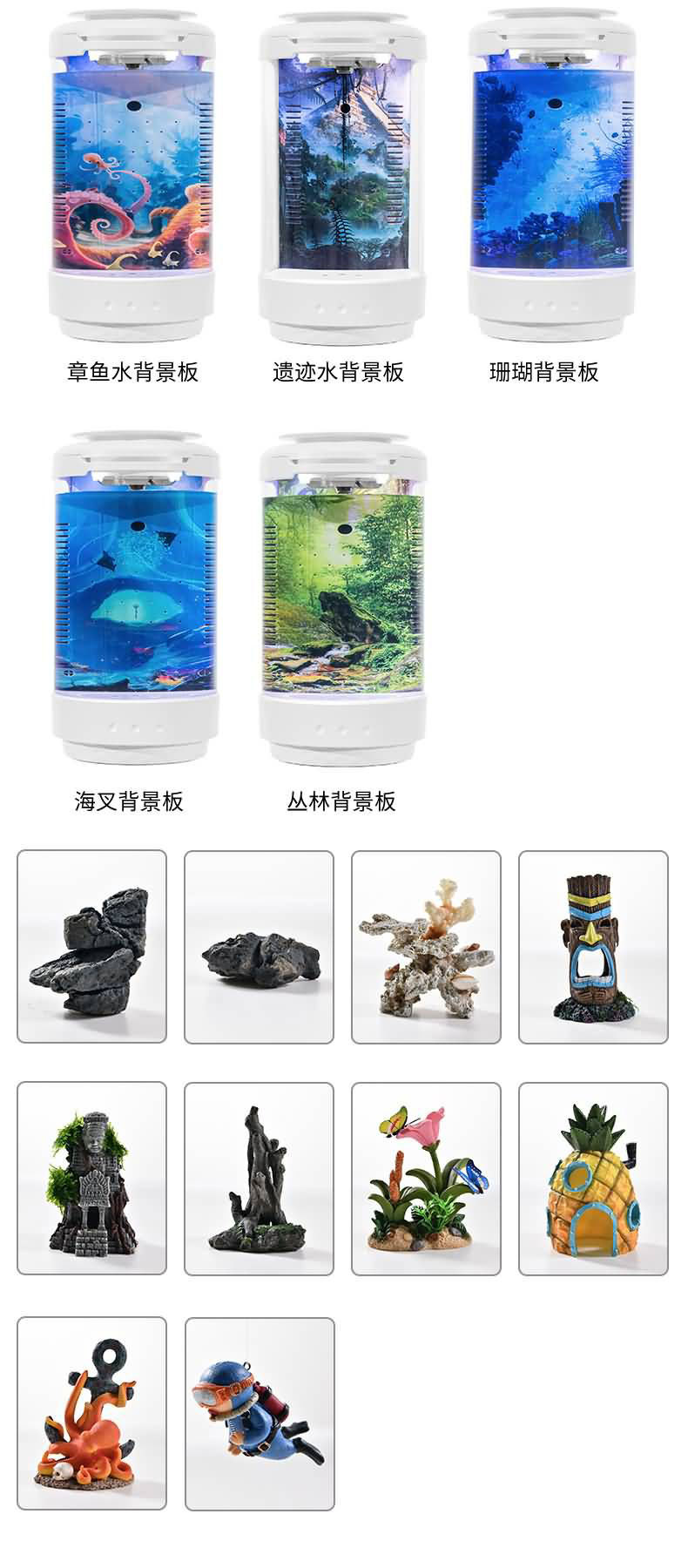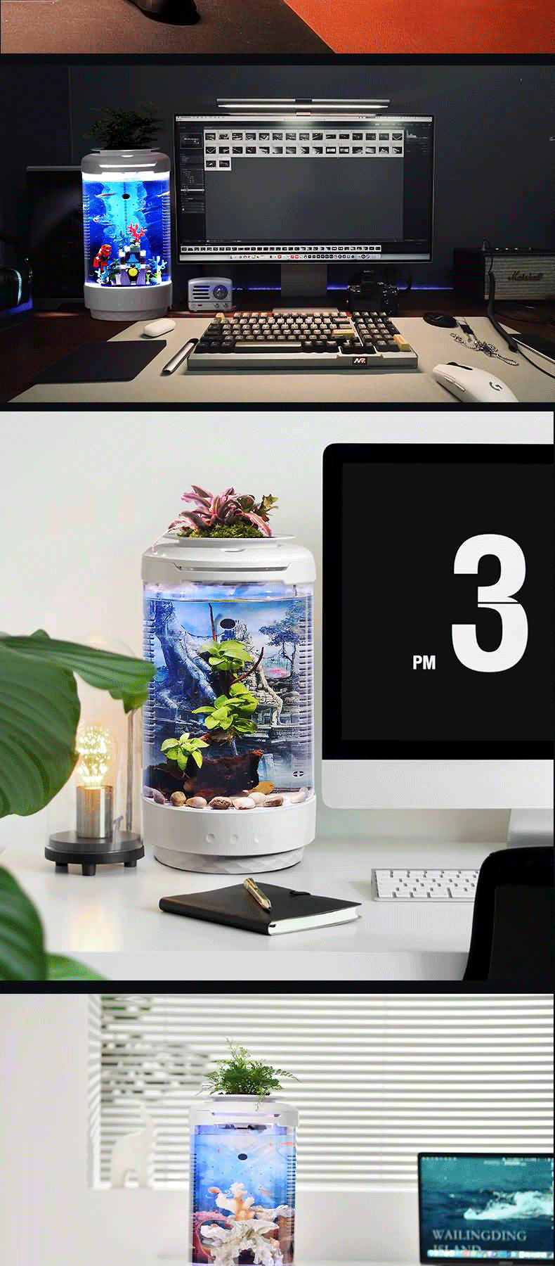 작은 창조적 인 생태 어항 다기능 데스크탑 물리적 순환 필터 장식용 작은 물고기 해파리 생태 욕조