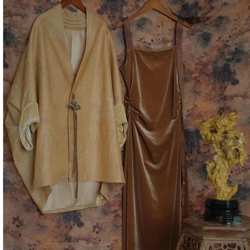 새로운 중국 스타일 국가 스타일 하이 엔드 분위기 세트 여성 가을 새로운 패션 틈새 벨벳 슬링 원피스 세트스토어 가기