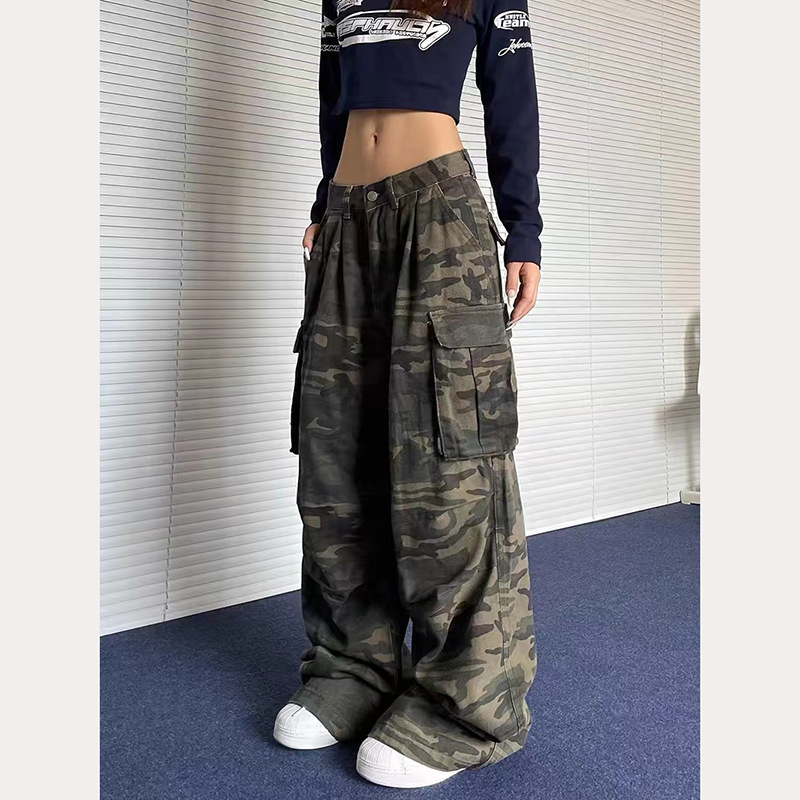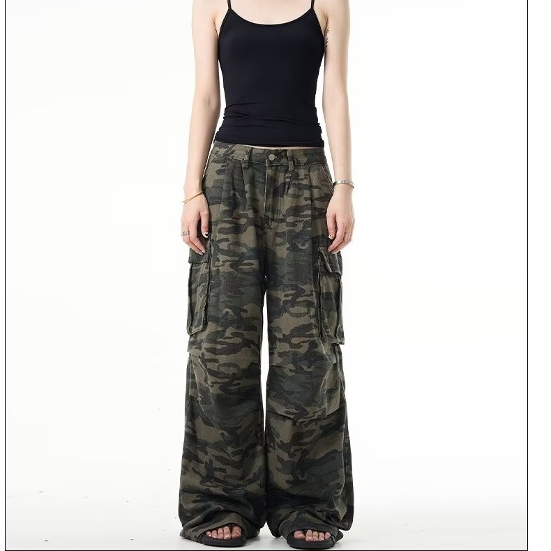 미국식 분위기 하이 스트리트 레트로 멀티 포켓 위장 바지 바지 남녀 패션 브랜드 스트리트 스트레이트 스택 긴 바지