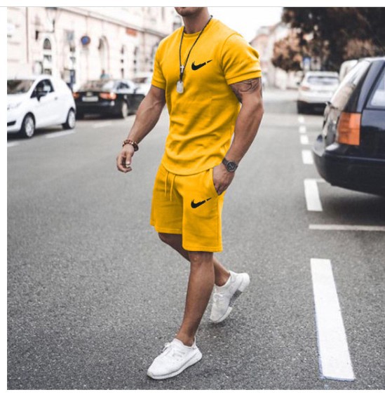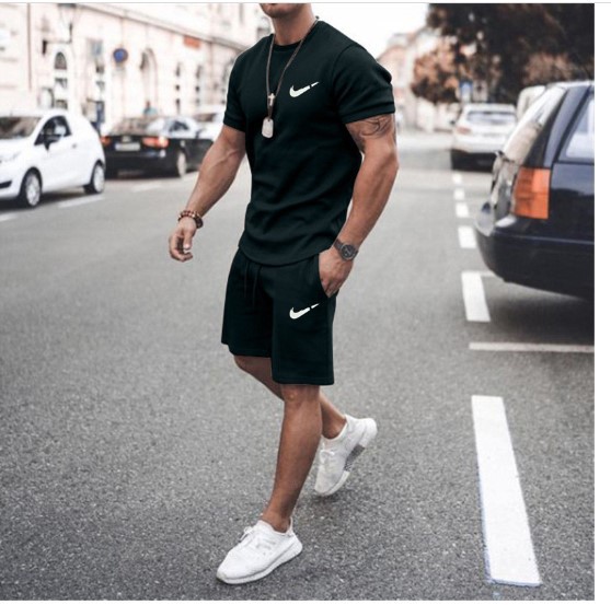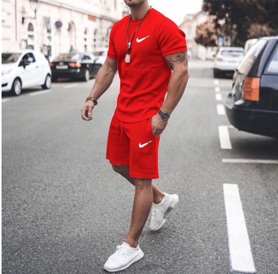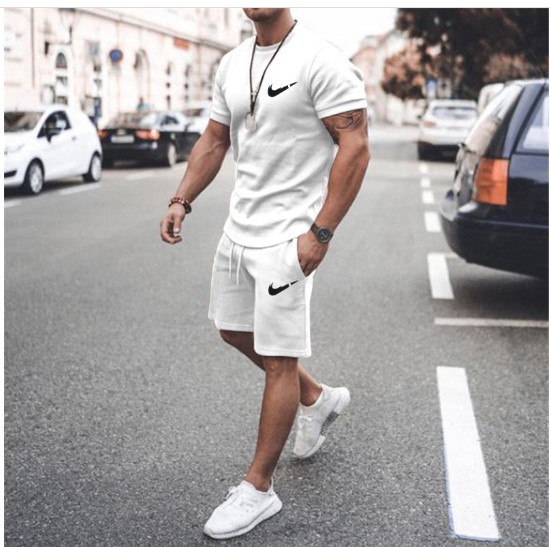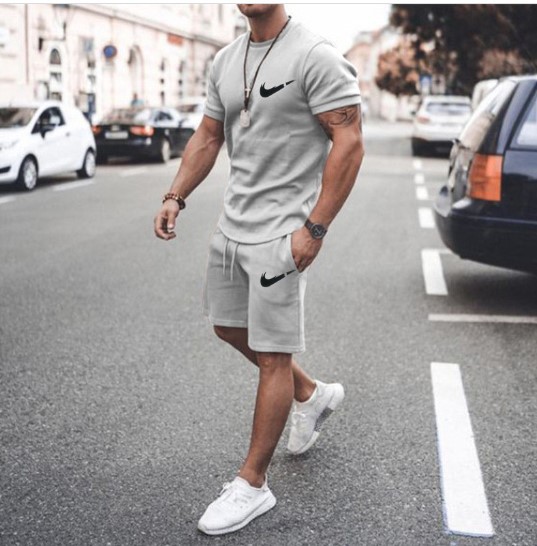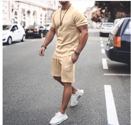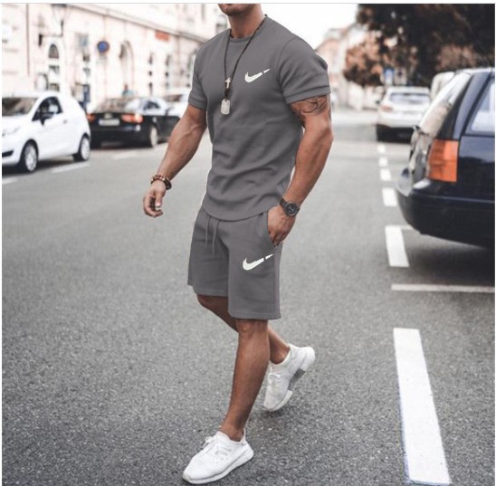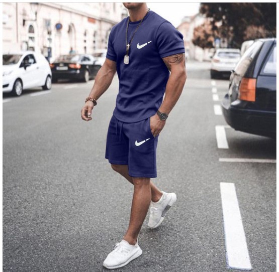 새로운 2023 유럽과 미국의 남자 여름 거리 남자 짧은 소매 반바지 남자 캐주얼 스포츠 플러스 사이즈 세트 남자