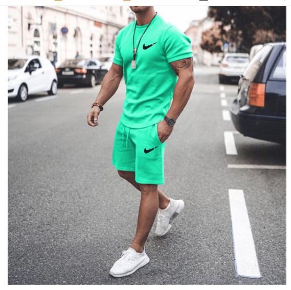새로운 2023 유럽과 미국의 남자 여름 거리 남자 짧은 소매 반바지 남자 캐주얼 스포츠 플러스 사이즈 세트 남자스토어 가기