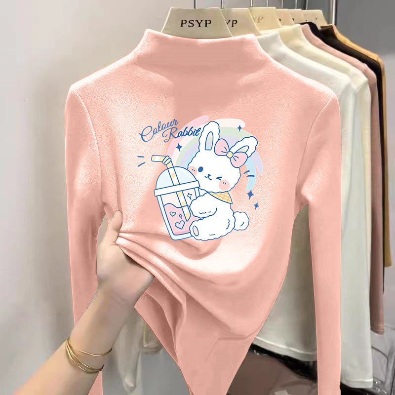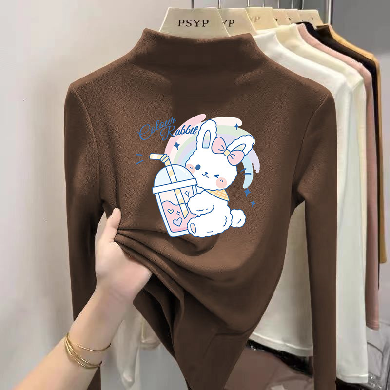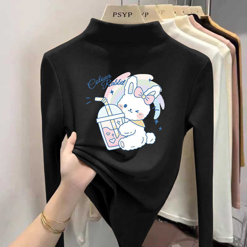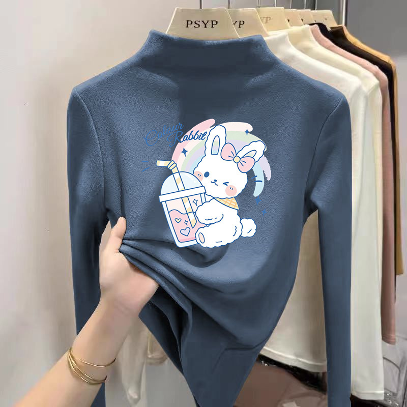 Y2087 # 소년 소녀 반 높은 칼라 벨벳 백킹 셔츠 봄과 가을 긴 소매 티셔츠 중 큰 어린이 겨울 외국인 스타일 티셔츠