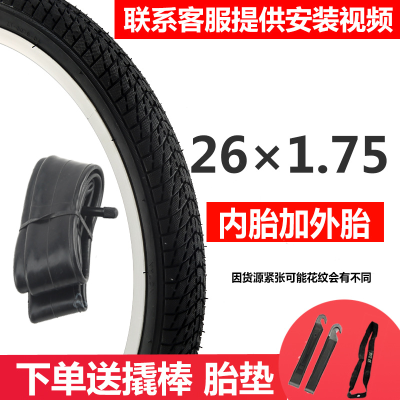 • 두꺼운 26X1.75 내부 튜브 + 외부 타이어, 타이어 패드 + 도구