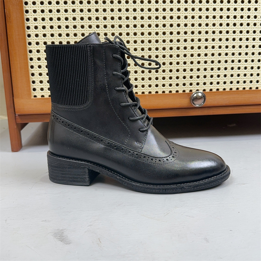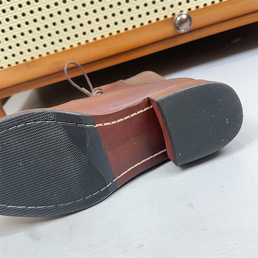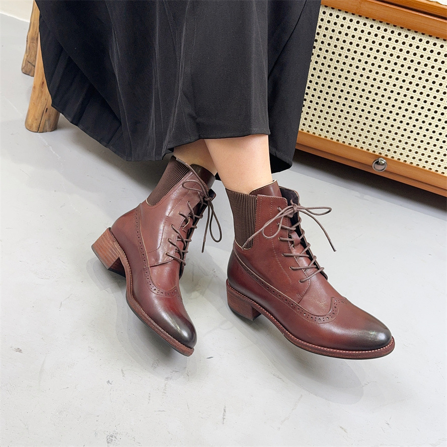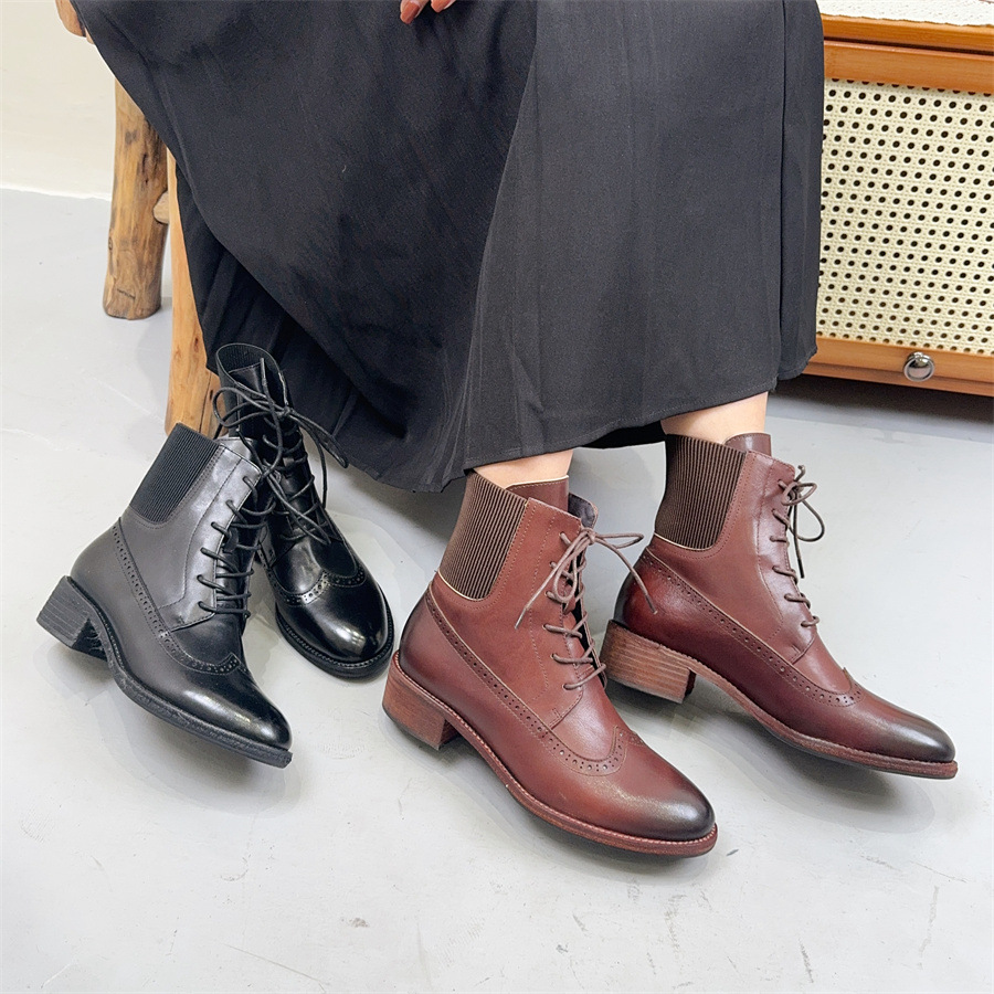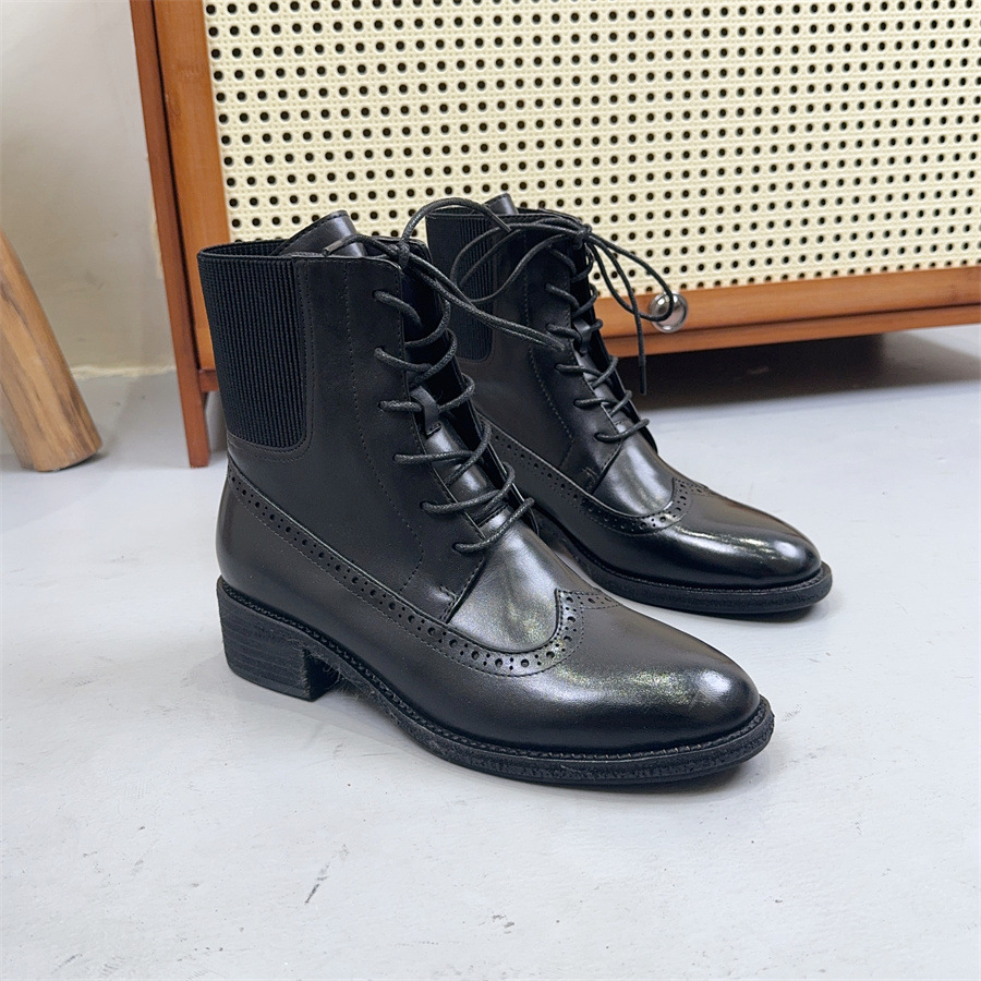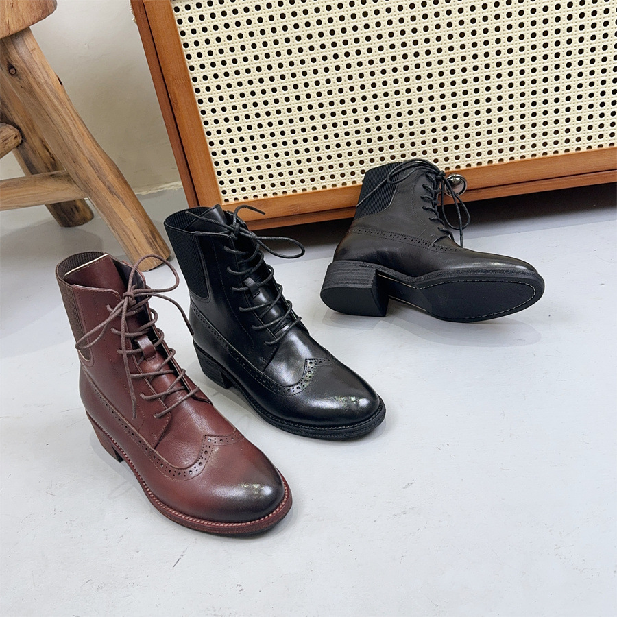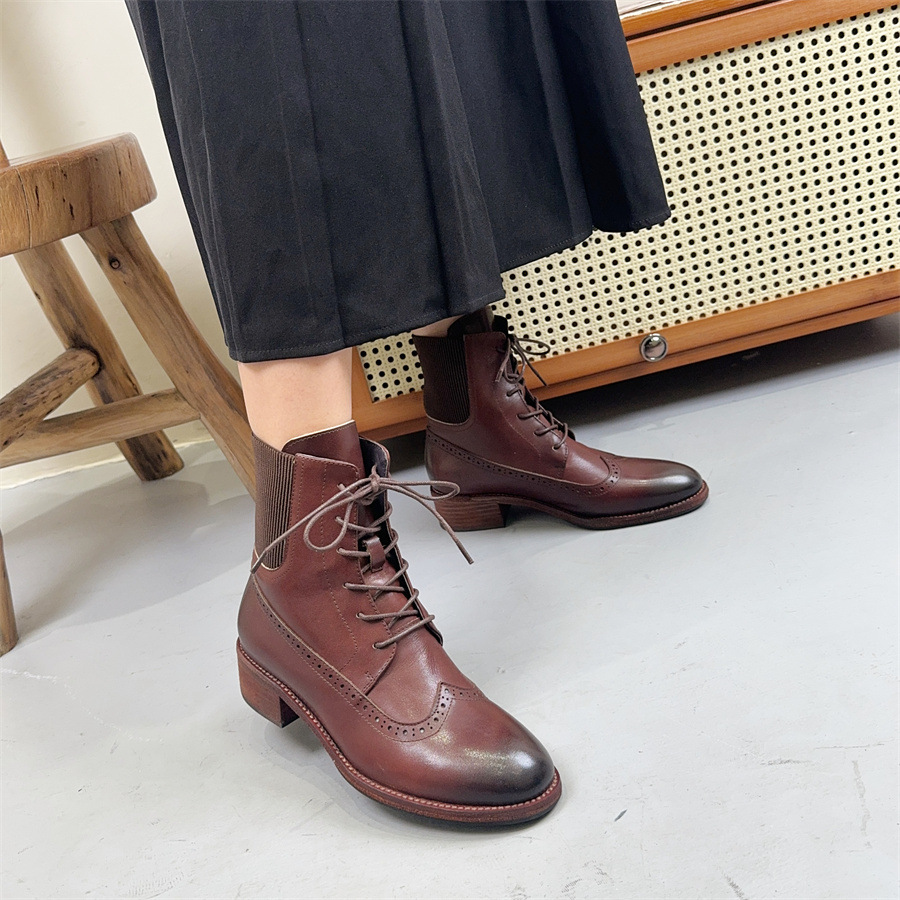 가을 2024 영국 스타일 Cowhide Martin 부츠 여성 라운드 발가락 봄과 가을 싱글 부츠 조각 플랫 발목 부츠스토어 가기