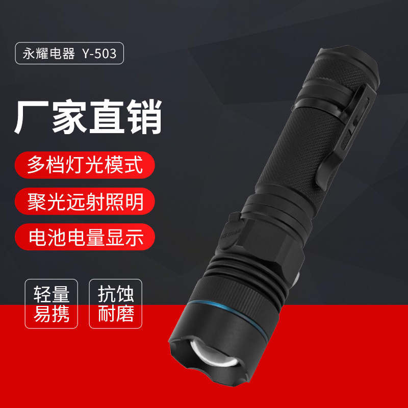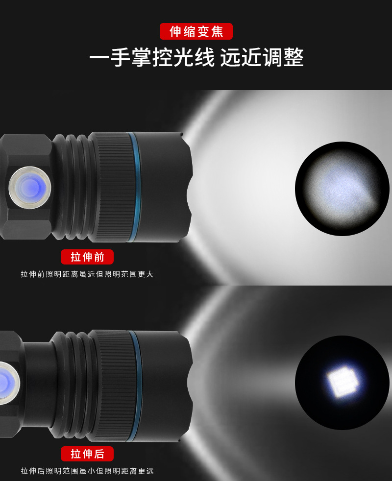국경 간 새로운 알루미늄 합금 충전식 야외 조명 손전등 LED 텔레스코픽 초점 경고등 손전등스토어 가기