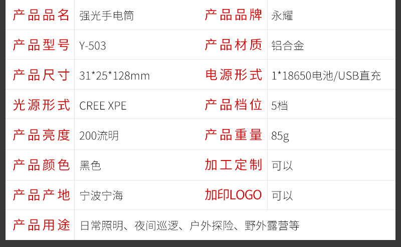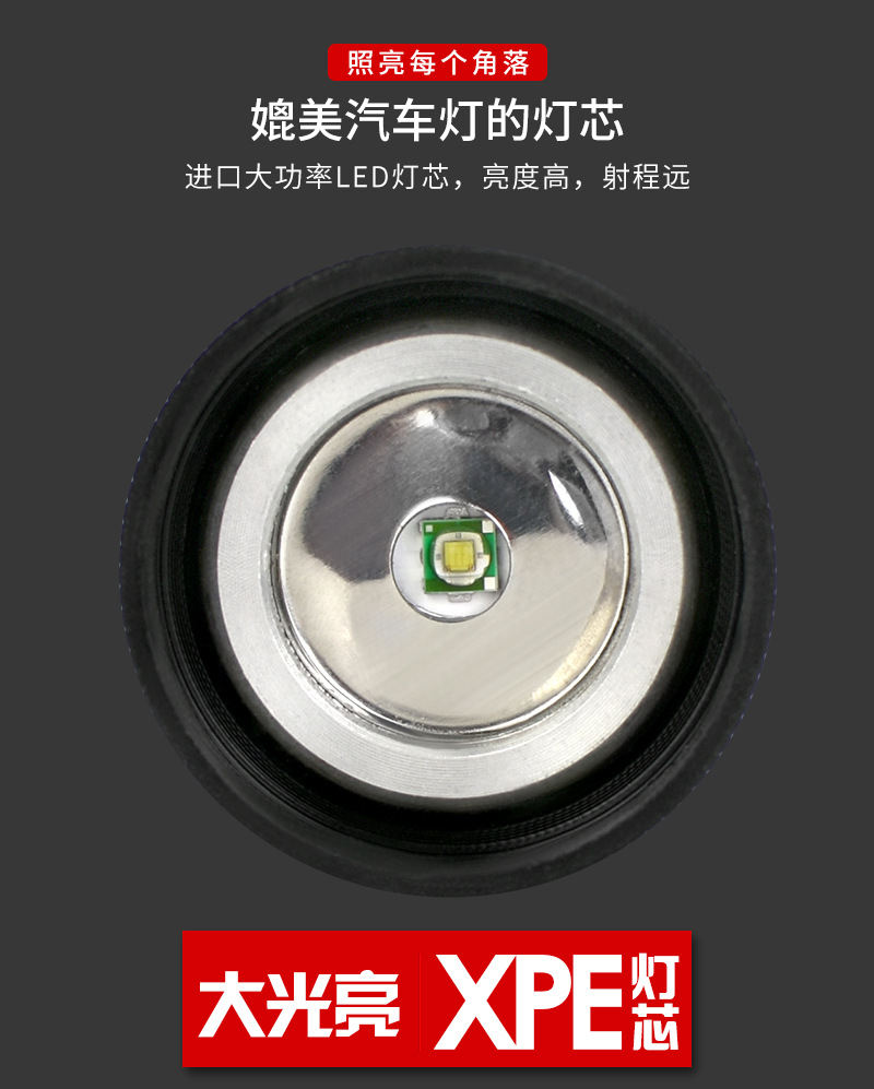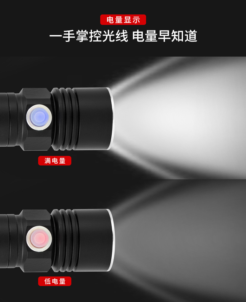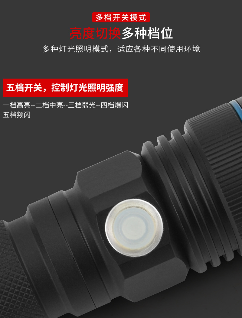 국경 간 새로운 알루미늄 합금 충전식 야외 조명 손전등 LED 텔레스코픽 초점 경고등 손전등