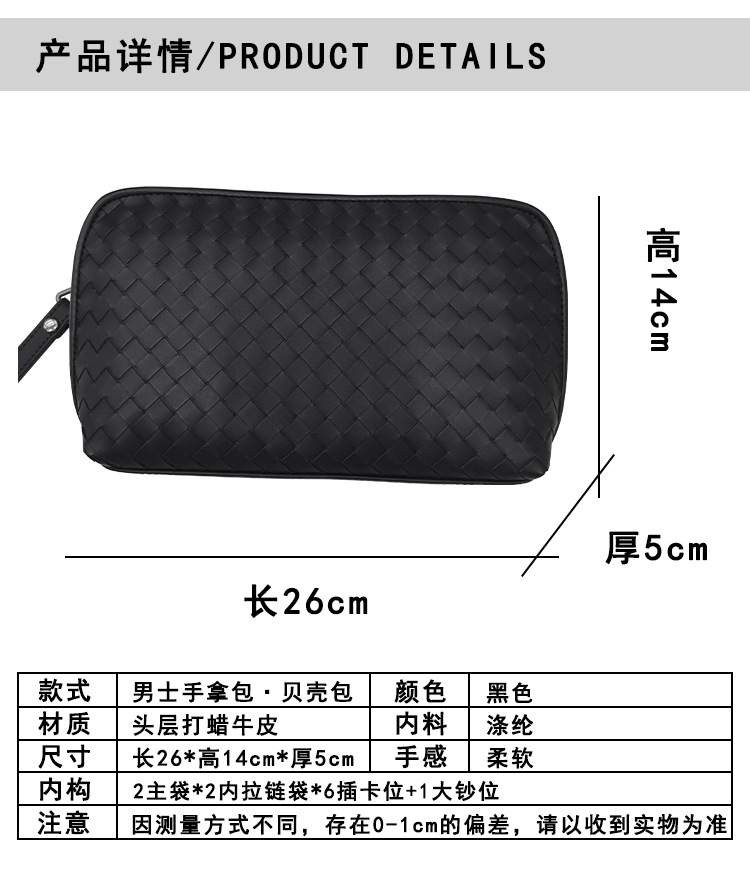 새로운 정품 가죽 핸드백 패션 클래식 손으로 짠 손목 남자 가방 탑 레이어 왁스 비겁한 대형 가방