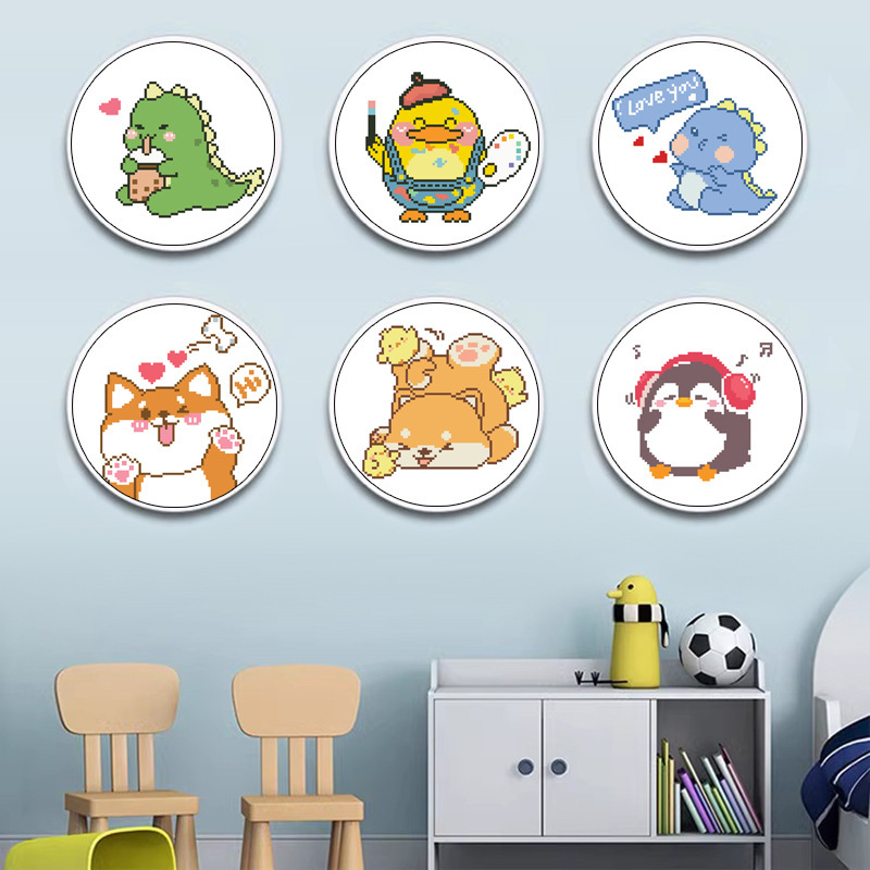크로스 스티치 2024 새로운 거실 실 자수 애니메이션 만화 동물 간단한 자수의 세대 빠른 손 국경을 흔들어스토어 가기