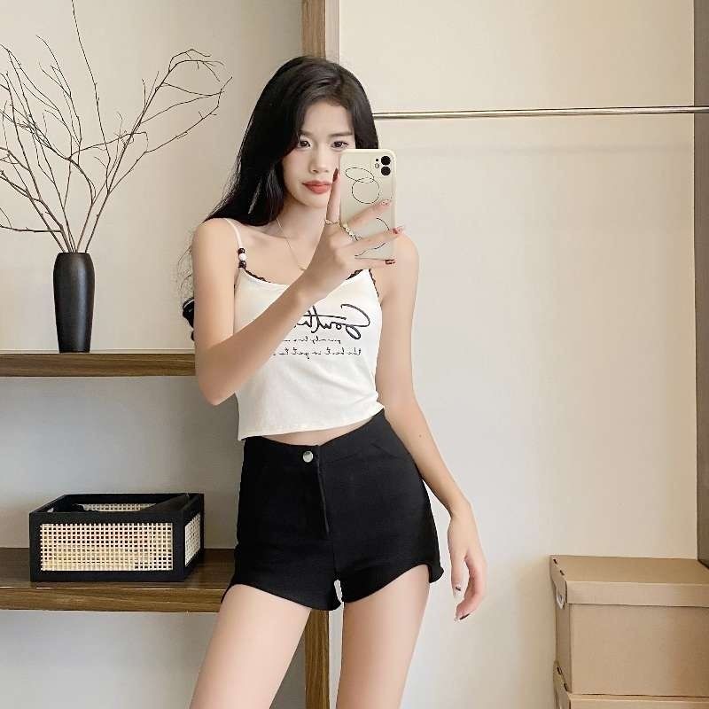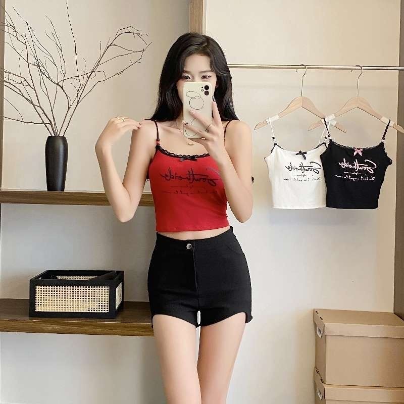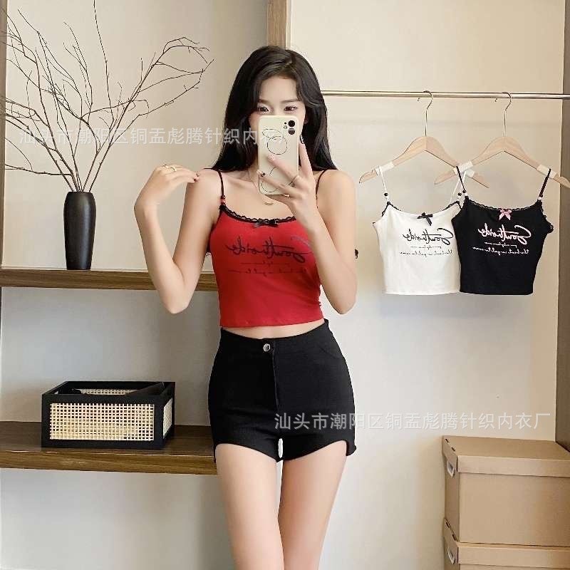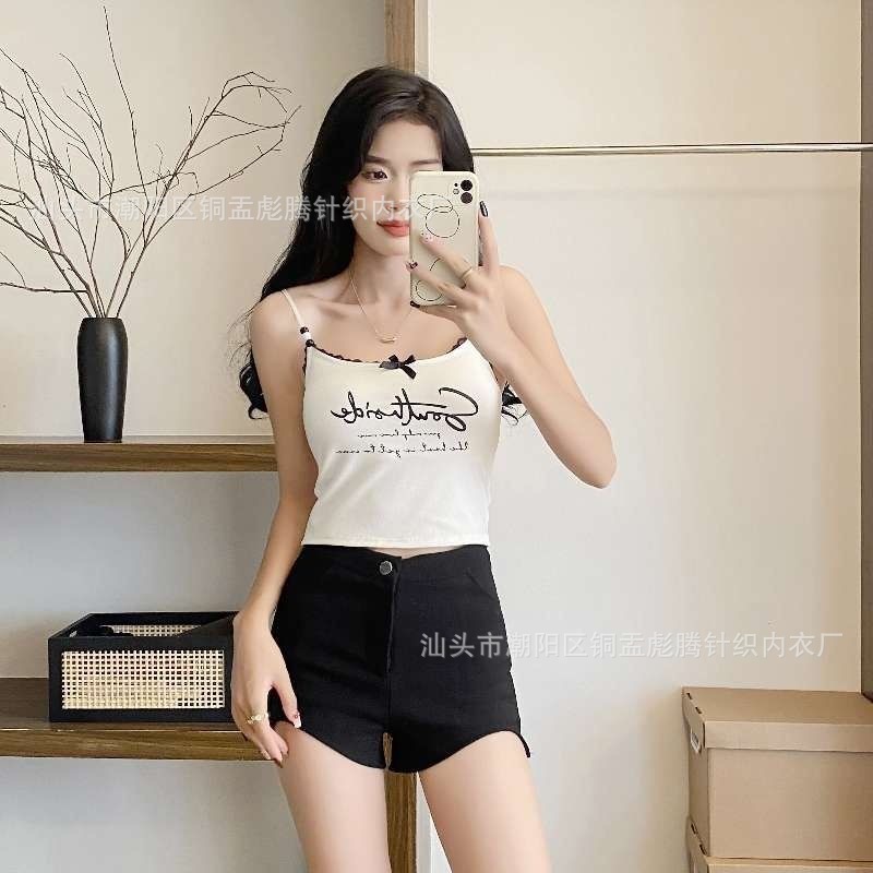 뜨거운 여자 검은 편지 레이스 조끼 여성의 순수한 섹시한 여자의 유행 짧은베이스 탑스토어 가기