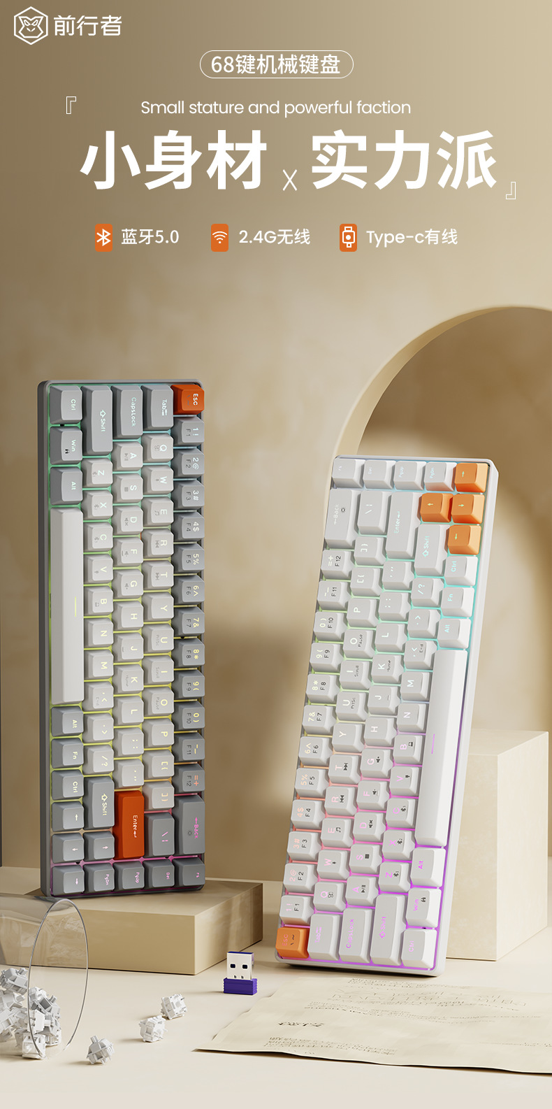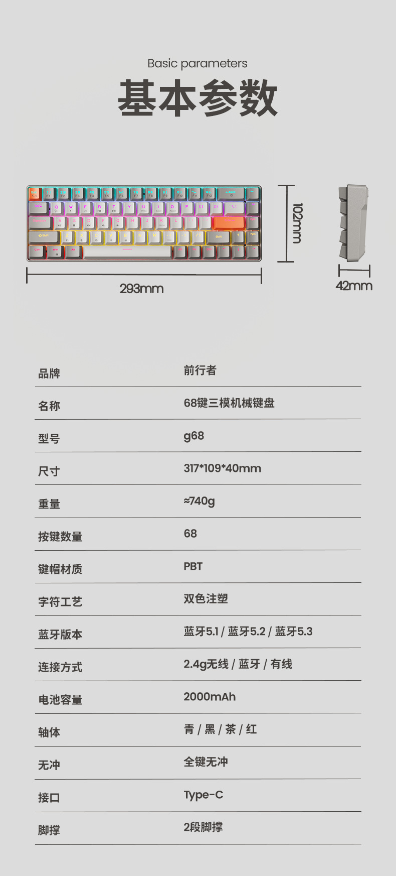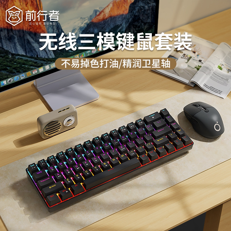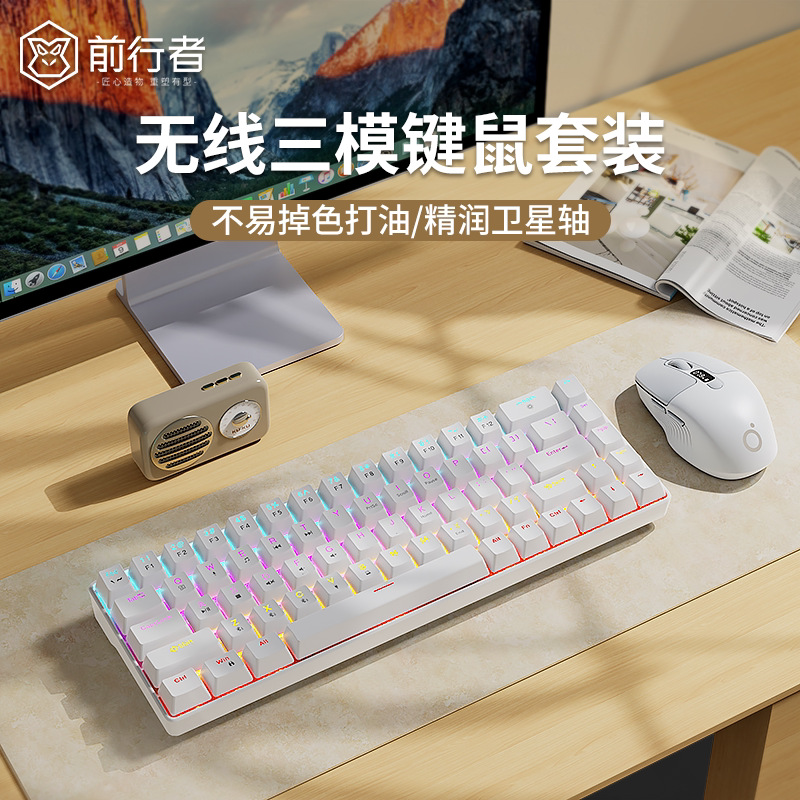 Forerunner G68 무선 블루투스 3 모드 복고풍 기계 키보드 마우스 세트 작은 휴대용 사무실 게임