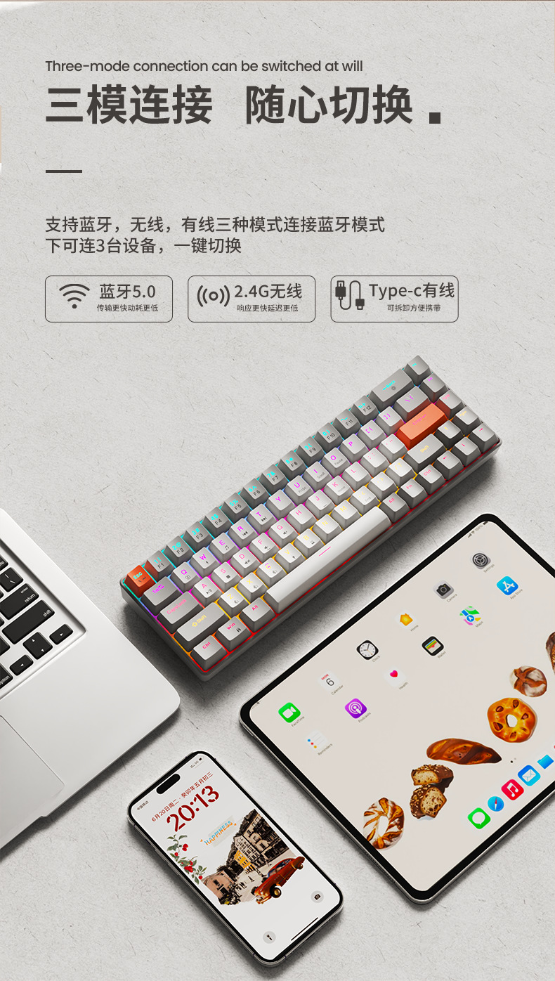 • 흰색 [2.4G+블루투스+유선 3모드] 무지개빛