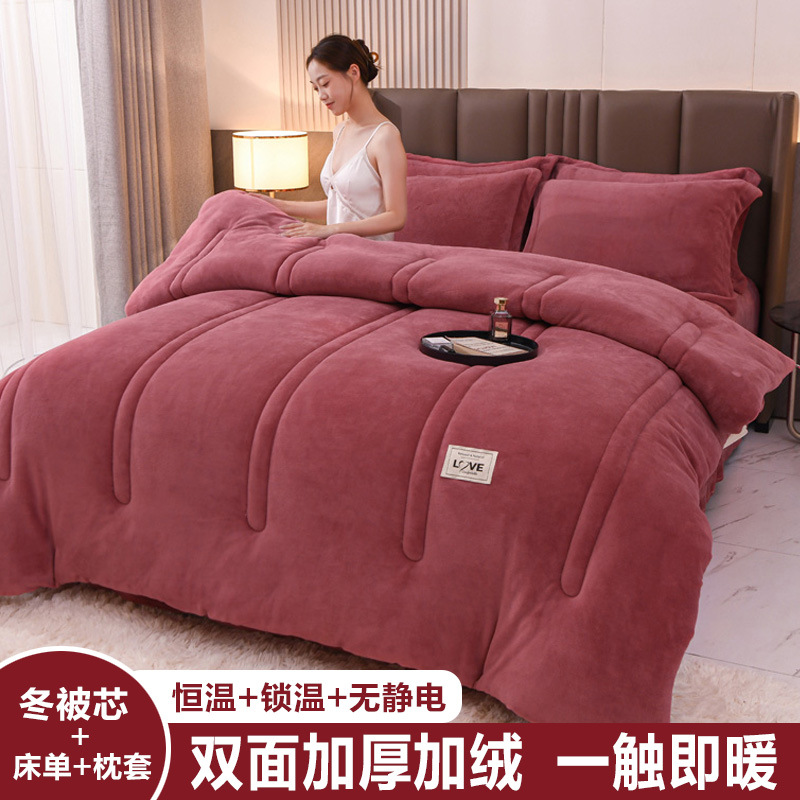 겨울 따뜻한 두꺼운 우유 벨벳 겨울 이불 양면 벨벳 산호 플란넬 우유 벨벳 퀼트 코어 겨울 이불 도매