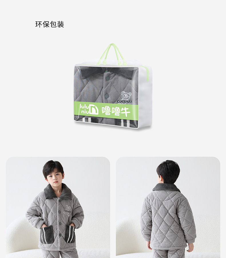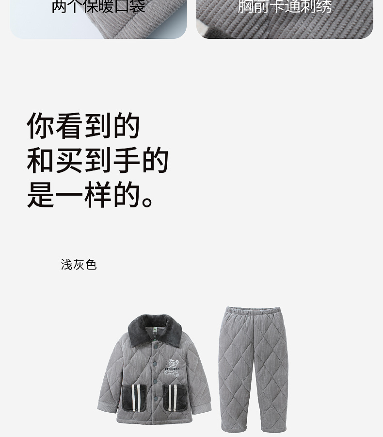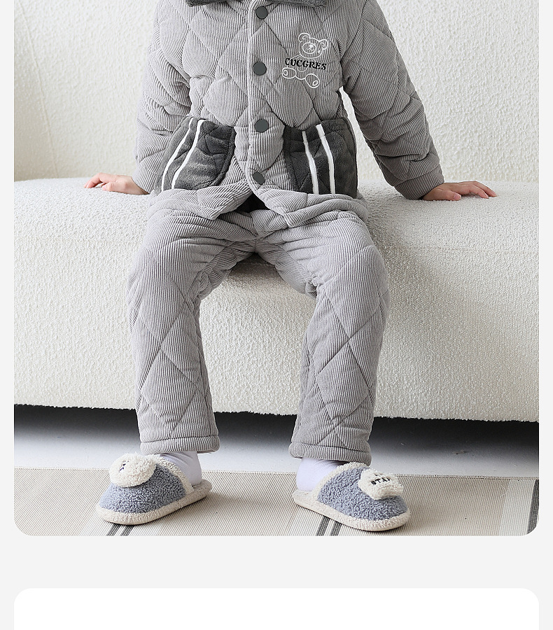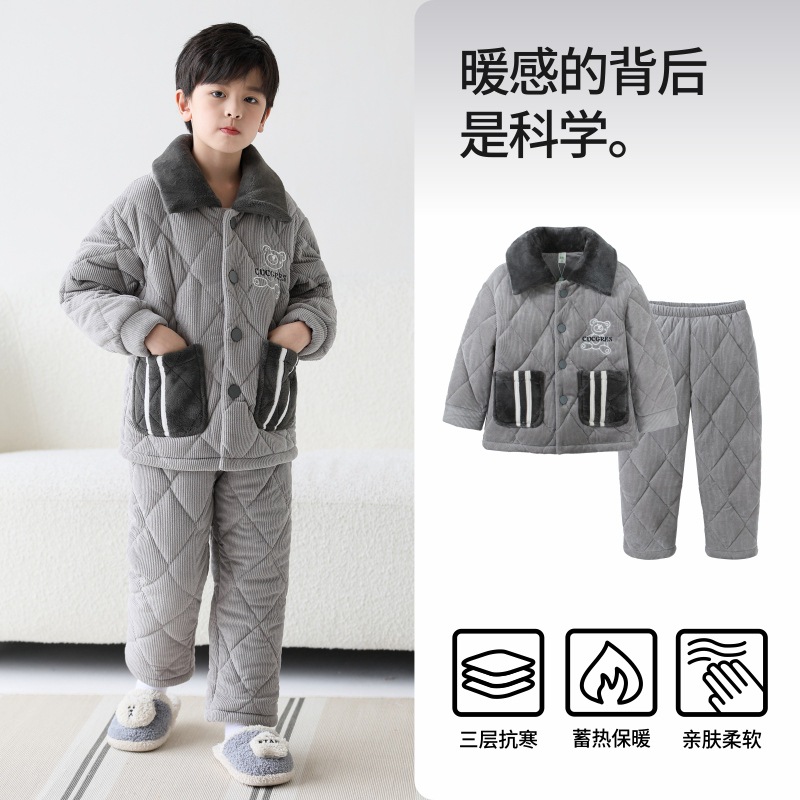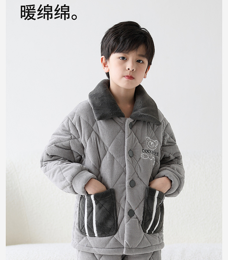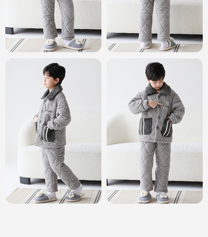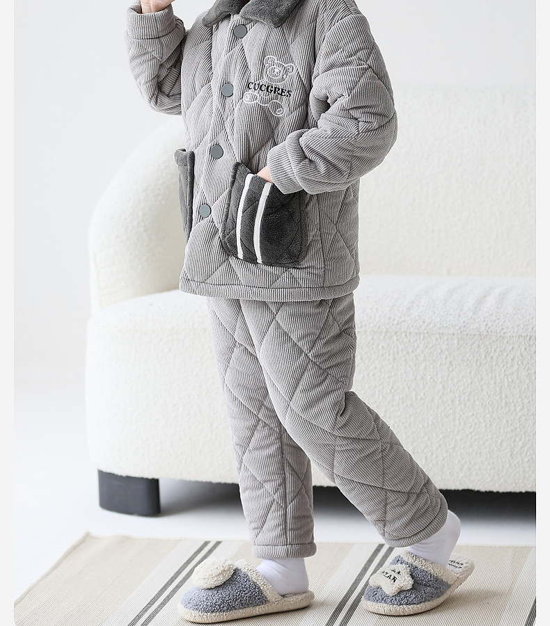 2024 겨울 소년 잠옷 코듀로이 3 층 면 두꺼운 따뜻한 어린이 산호 양털 홈 옷스토어 가기