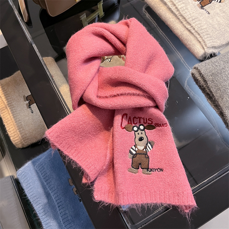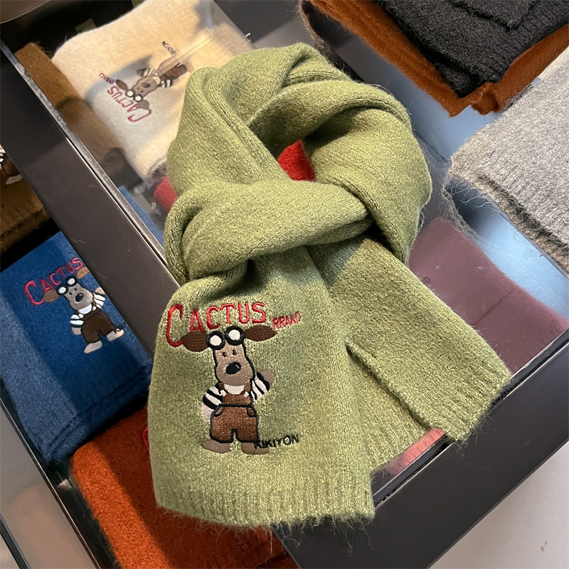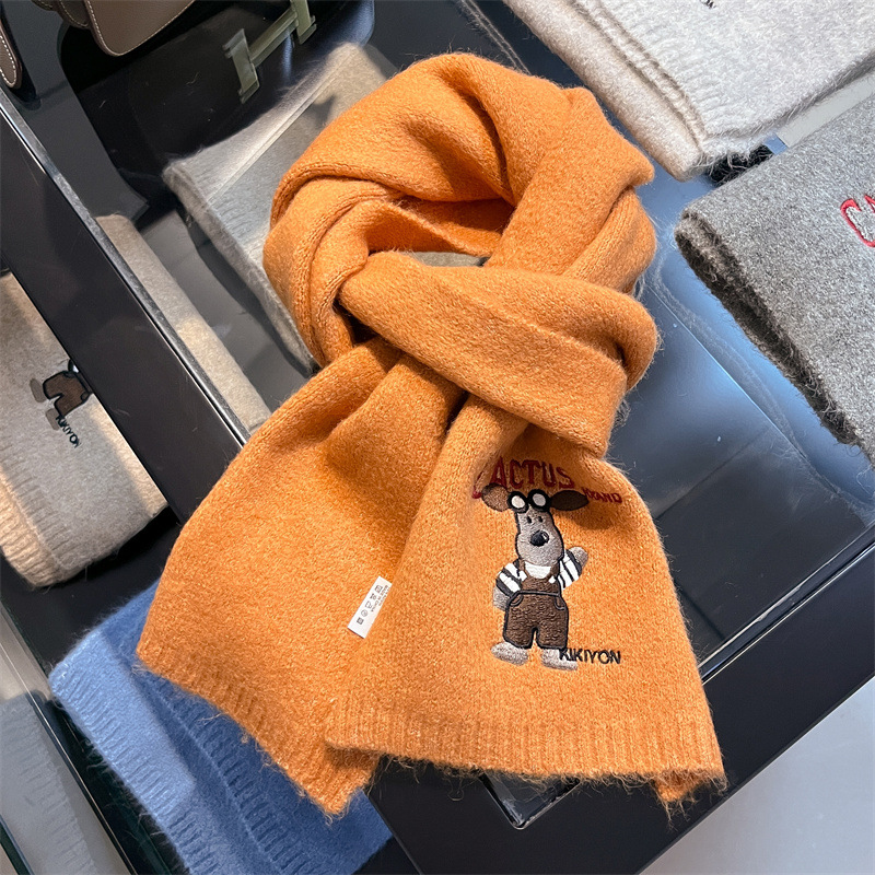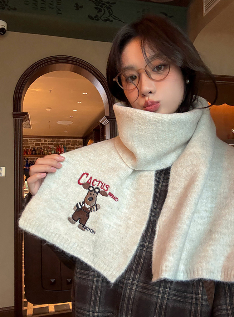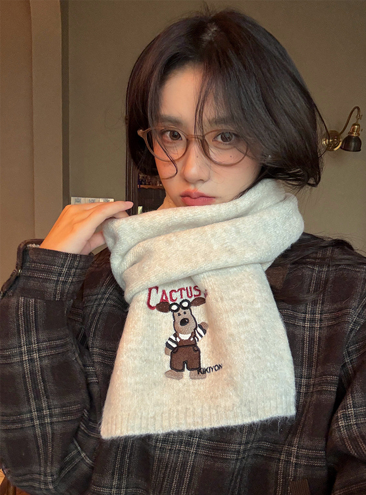 귀여운 만화 캐릭터 모양의 여성용 니트 스카프, 2024년 가을 겨울 신상, 두껍고 따뜻하며 다용도로 활용 가능한 학생용 목 보호 스카프
