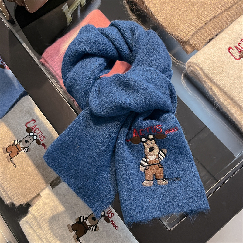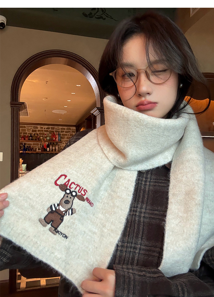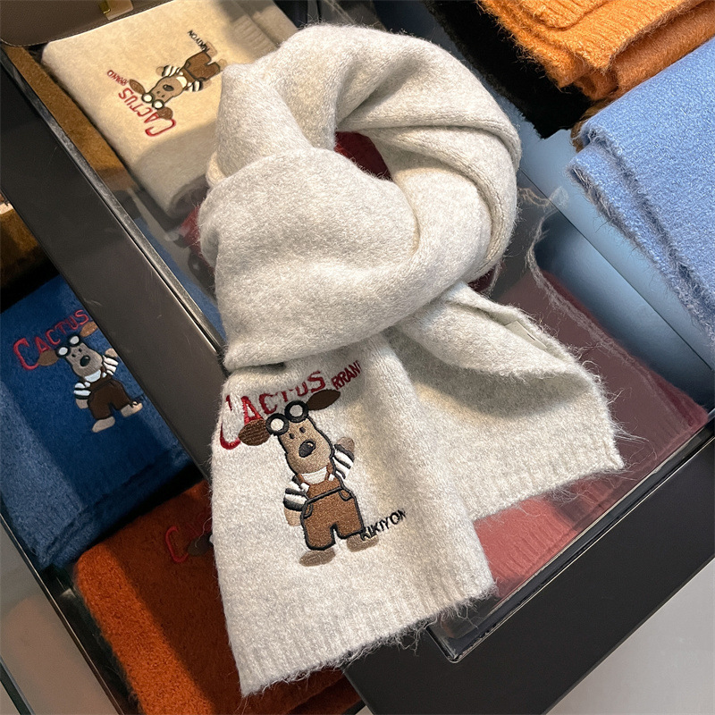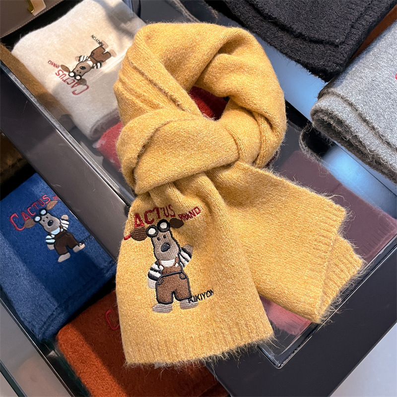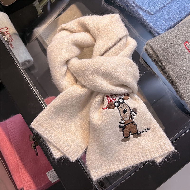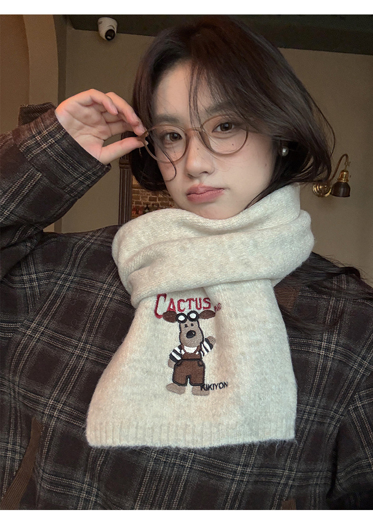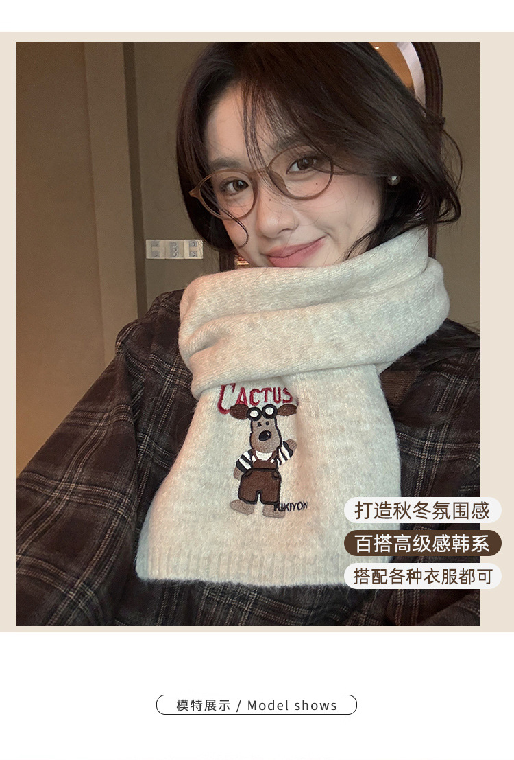 귀여운 만화 캐릭터 모양의 여성용 니트 스카프, 2024년 가을 겨울 신상, 두껍고 따뜻하며 다용도로 활용 가능한 학생용 목 보호 스카프스토어 가기