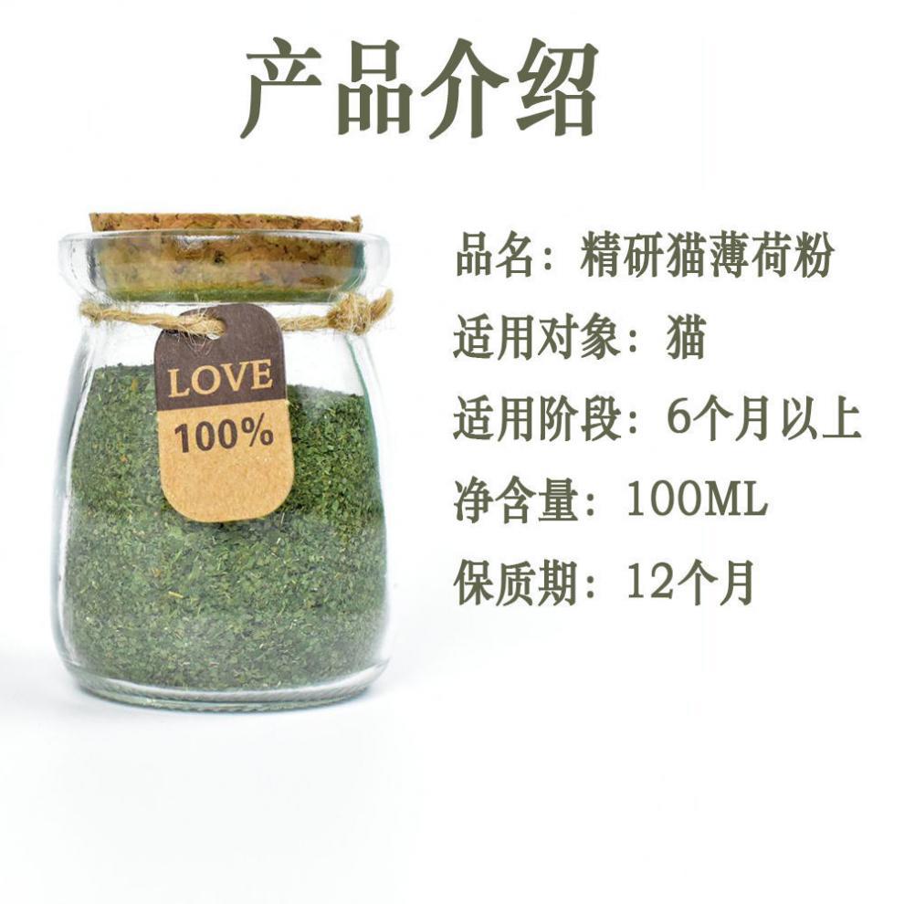 유리병에 담긴 고양이 민트 가루는 소화를 돕고 털뭉치를 제거하며 입을 깨끗하게 해줍니다. 고양이 잔디 고양이 자극 식용 고양이 간식
