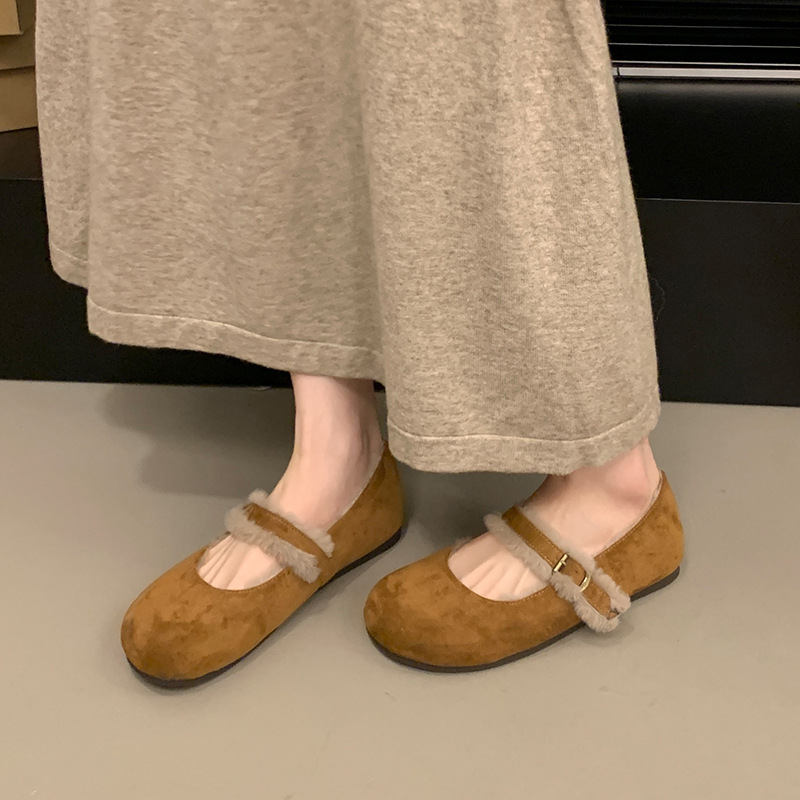 2024 년 가을 새로운 부드러운 이브닝 브리즈 기모 메리 제인 신발 여성 한국식 틈새 스웨이드 스커트 마오 여성 신발