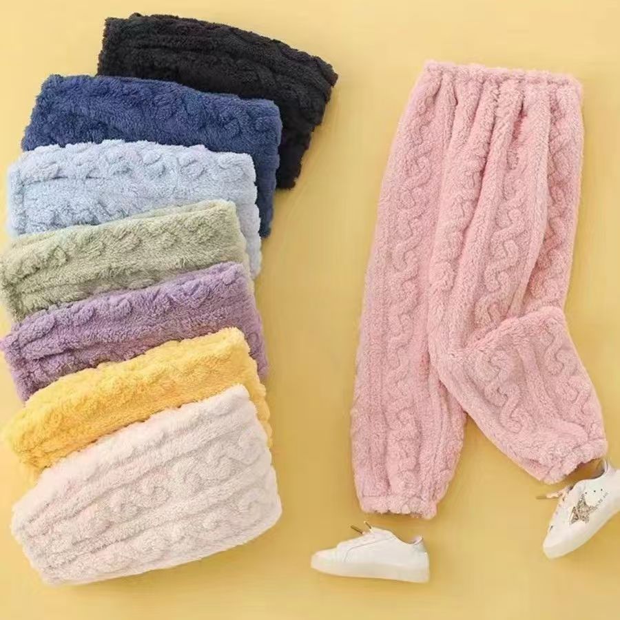 어린이 파자마 바지 산호 양털 소녀 바지 가을과 겨울 소년 플란넬 따뜻한 중 큰 어린이 집 따뜻한 바지스토어 가기