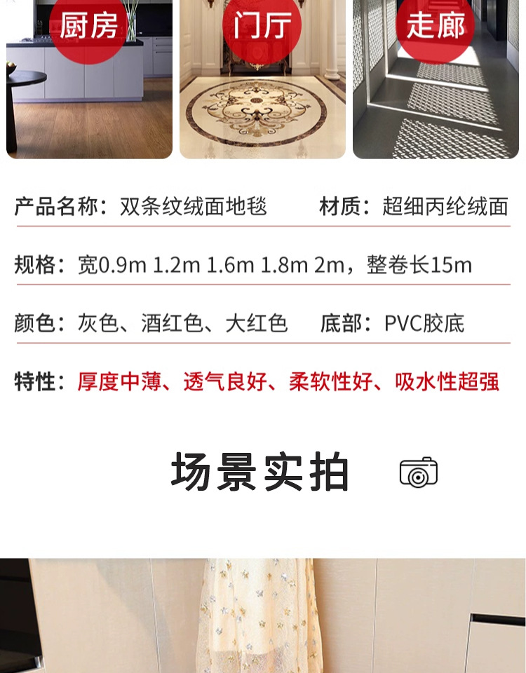 카펫 먼지 방지 및 사용하기 쉬운 미끄럼 방지 홈 바닥 매트 상업용 입구 문 풀 샵 절단 가능한 복도 더블 스트라이프 카펫
