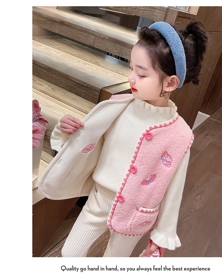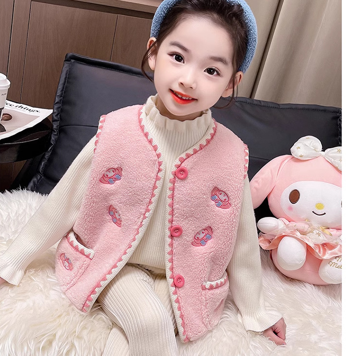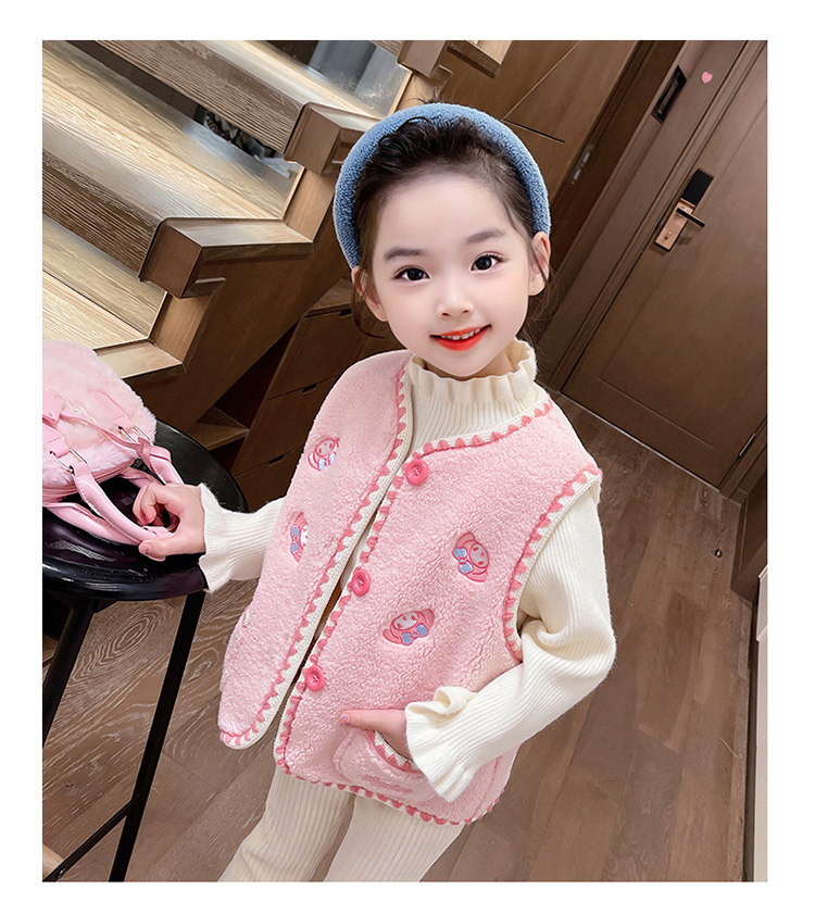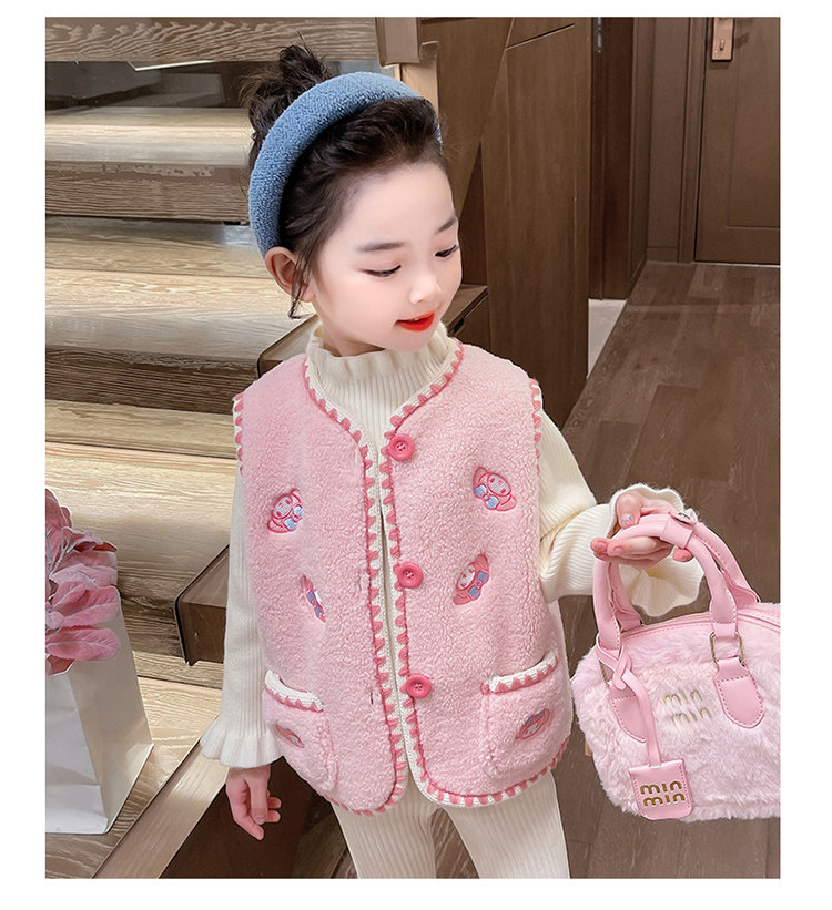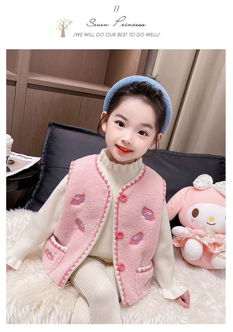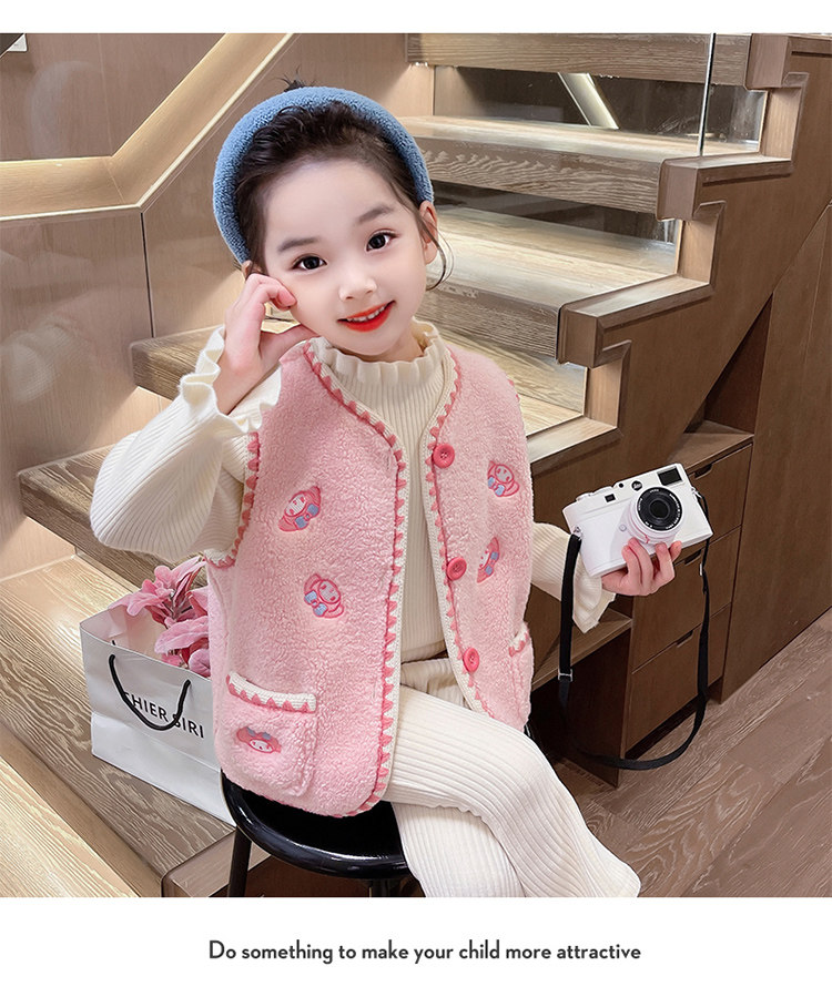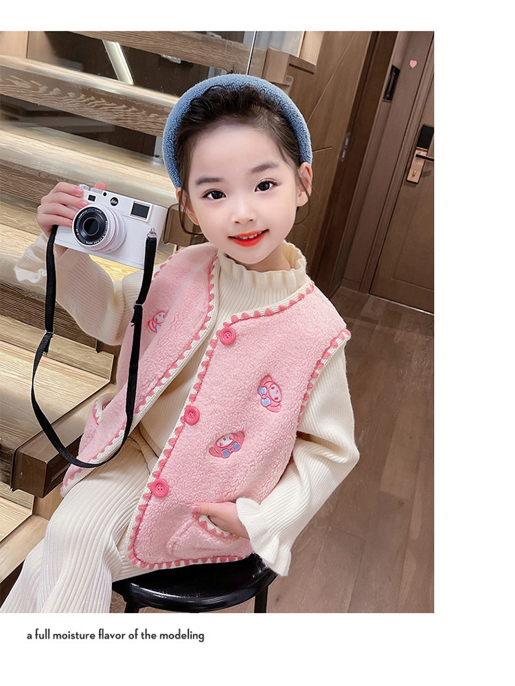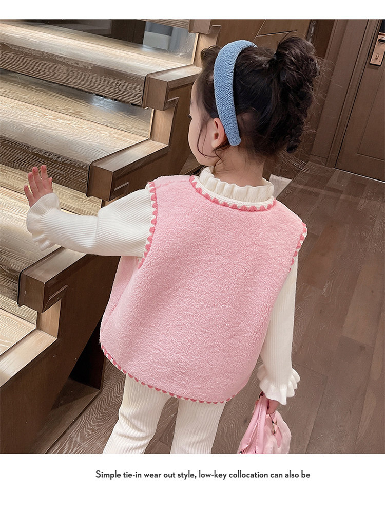 어린이 여아 양털 조끼 2025 신상 가을 겨울용 외출용 플러스 벨벳 보온 여아 조끼 유아용스토어 가기