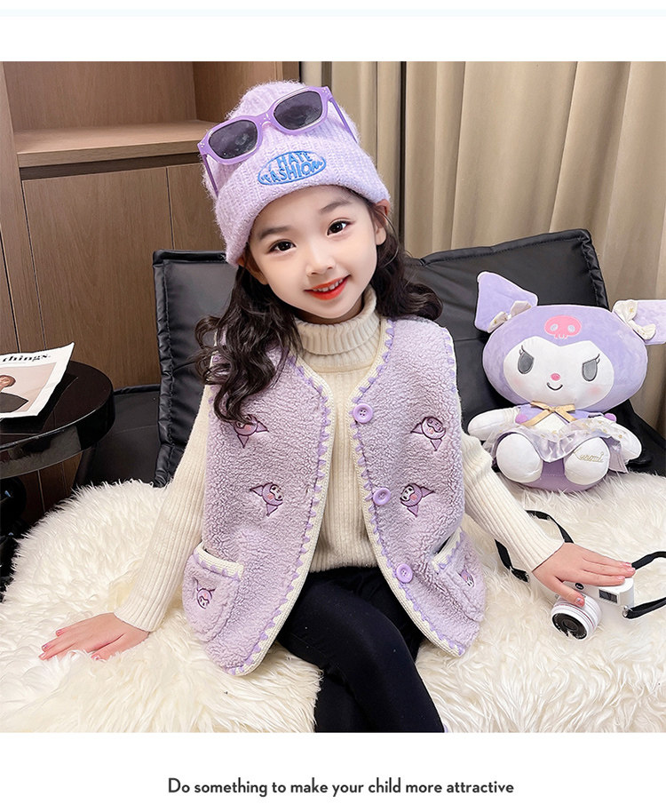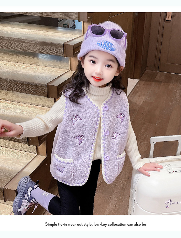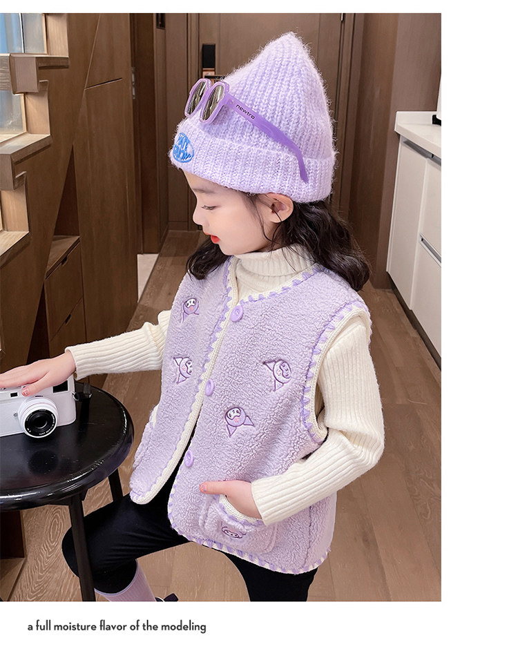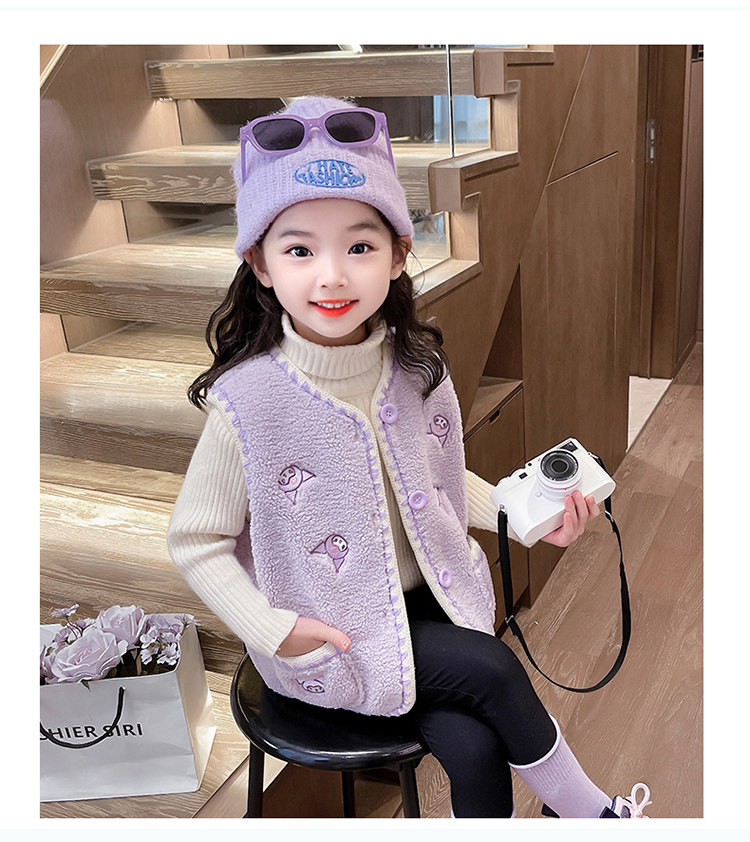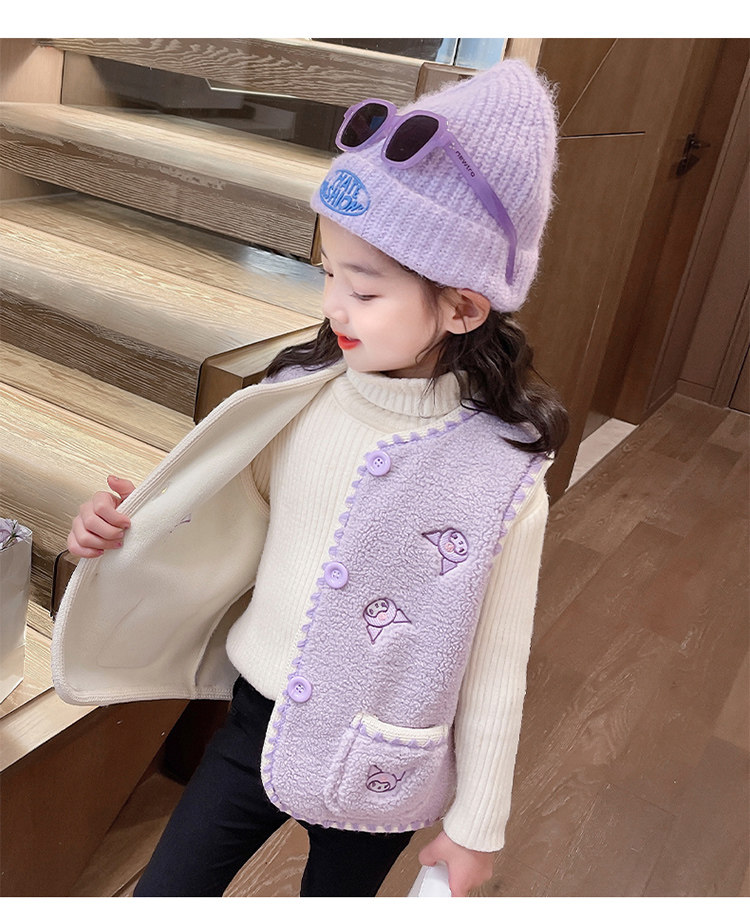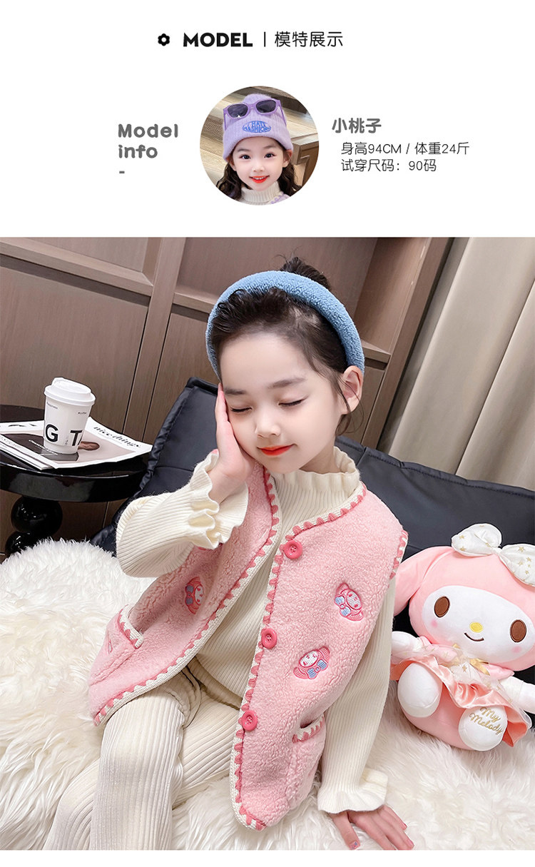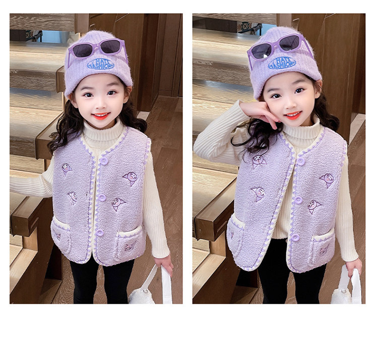 어린이 여아 양털 조끼 2025 신상 가을 겨울용 외출용 플러스 벨벳 보온 여아 조끼 유아용스토어 가기