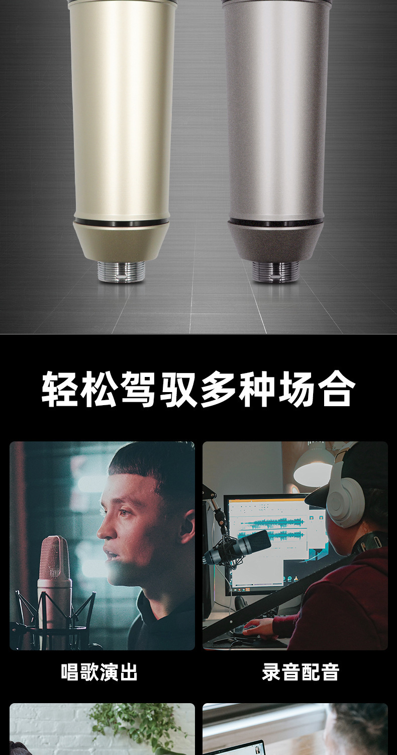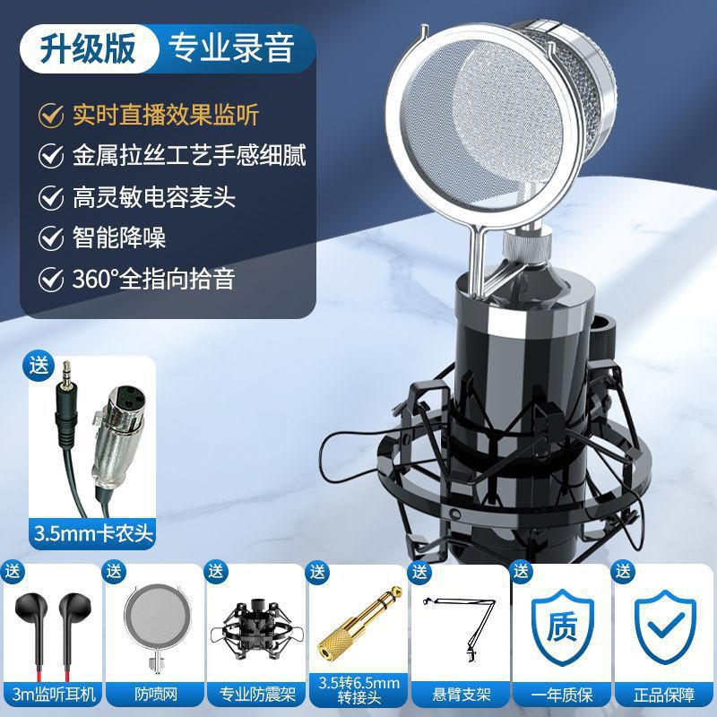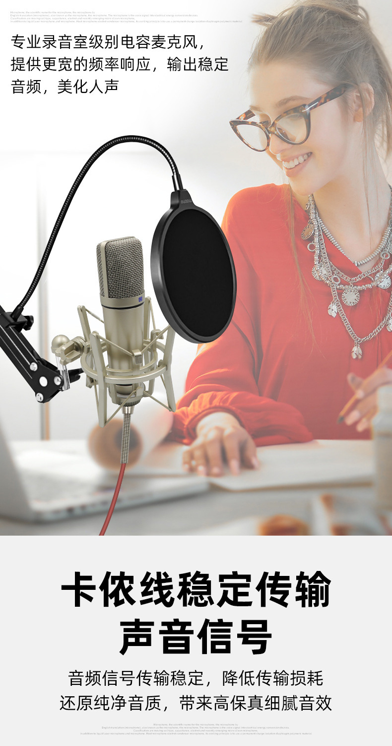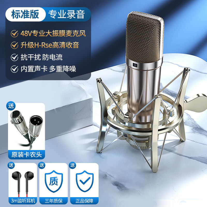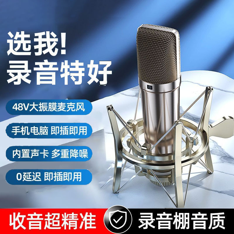 라이브 방송용 금도금 콘덴서 마이크 48V 팬텀 전원 공급 장치 스프레이 방지 마이크 녹음 마이크 60위안부터 시작스토어 가기