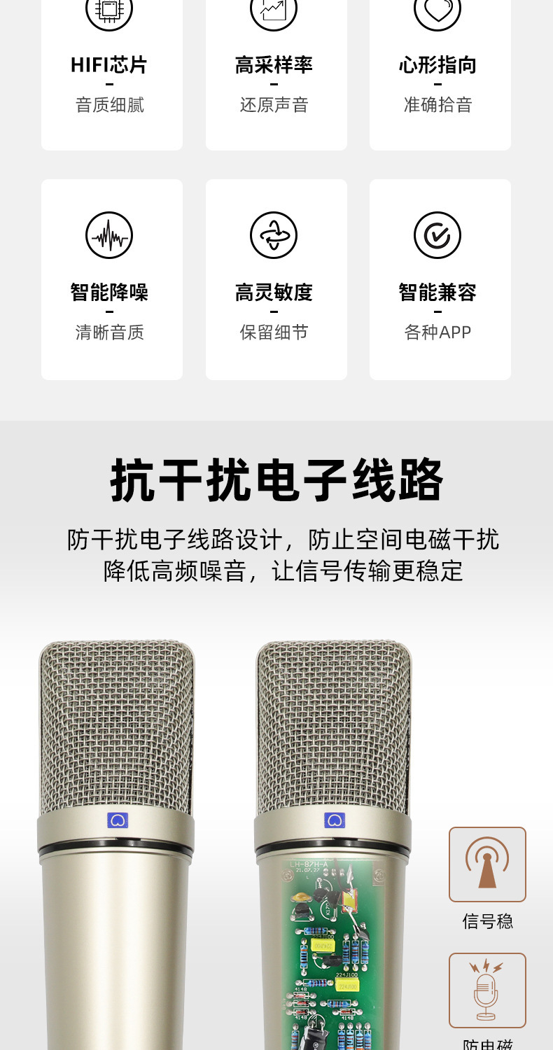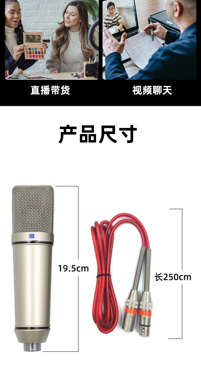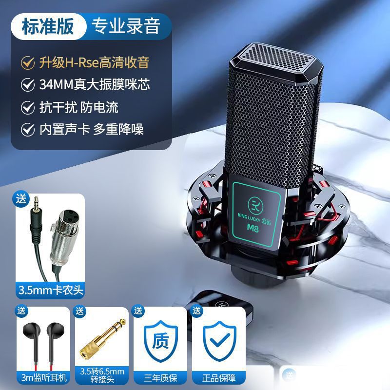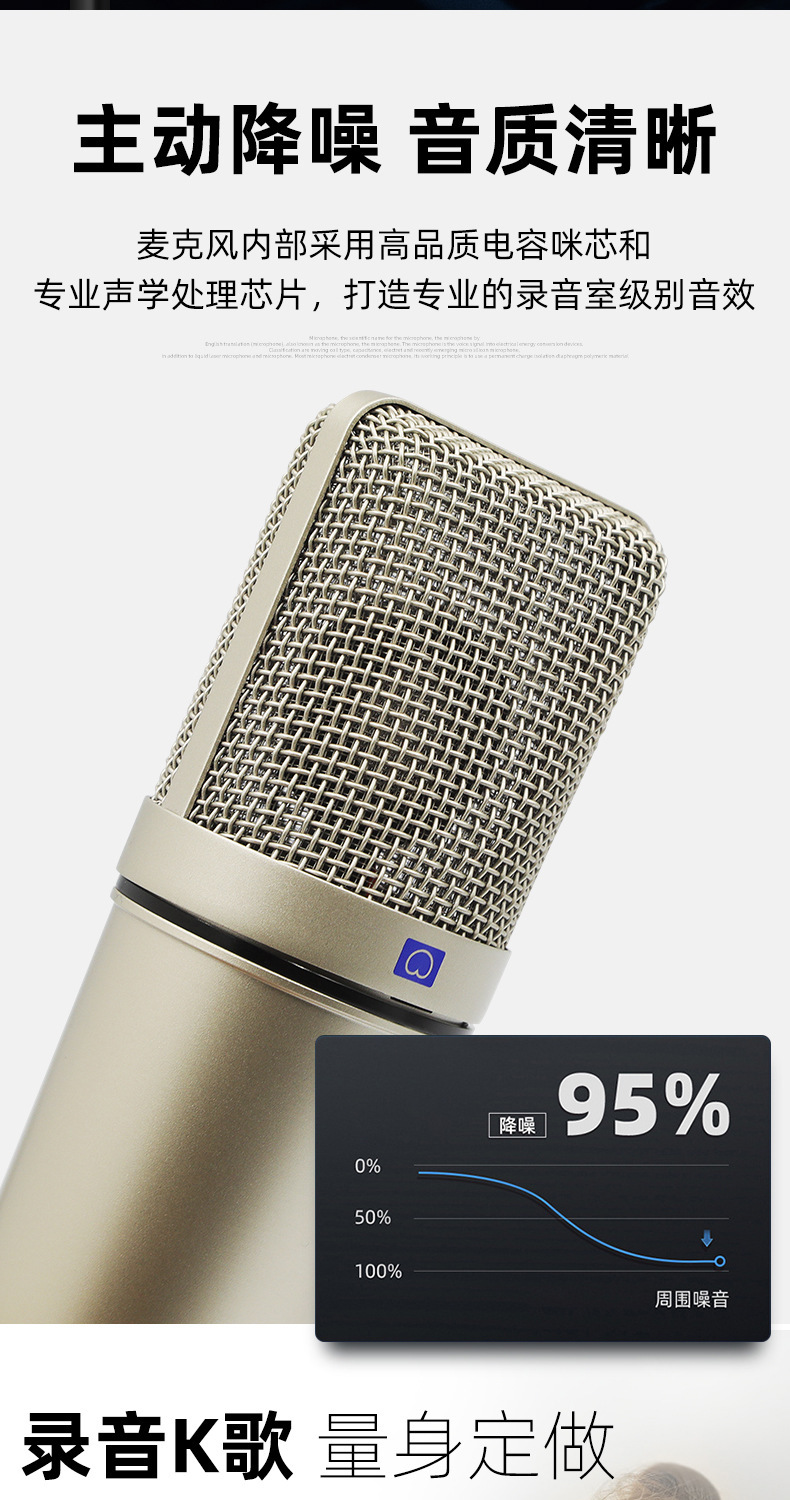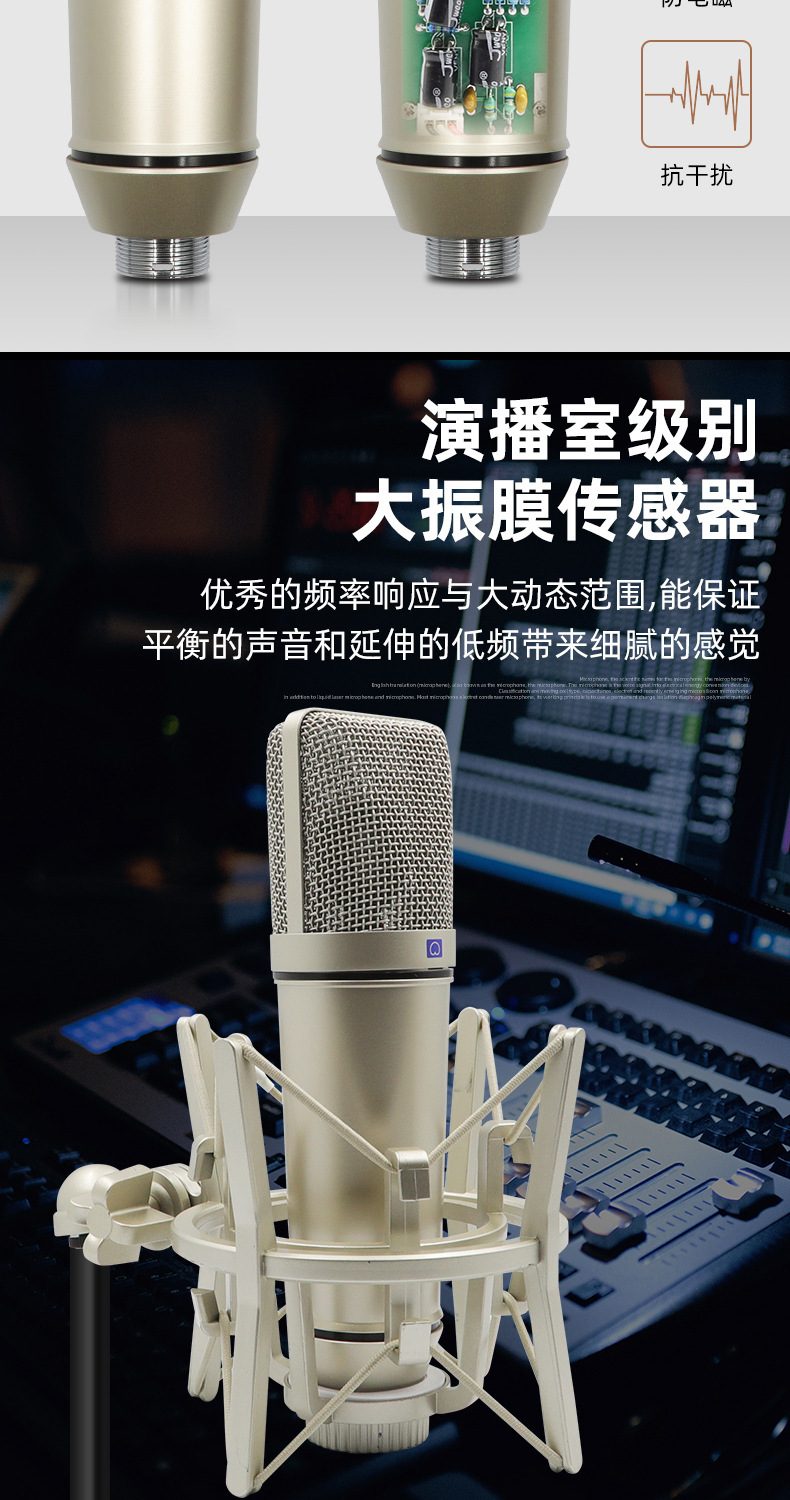라이브 방송용 금도금 콘덴서 마이크 48V 팬텀 전원 공급 장치 스프레이 방지 마이크 녹음 마이크 60위안부터 시작스토어 가기