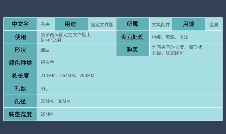 3 구멍 둥근 구멍 금속 바인더 A5/B5 파일 고정 장치 사무실 문구 액세서리 철 구멍 홀더 바인더 클립