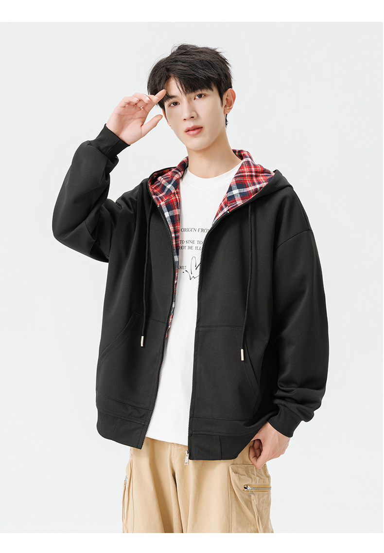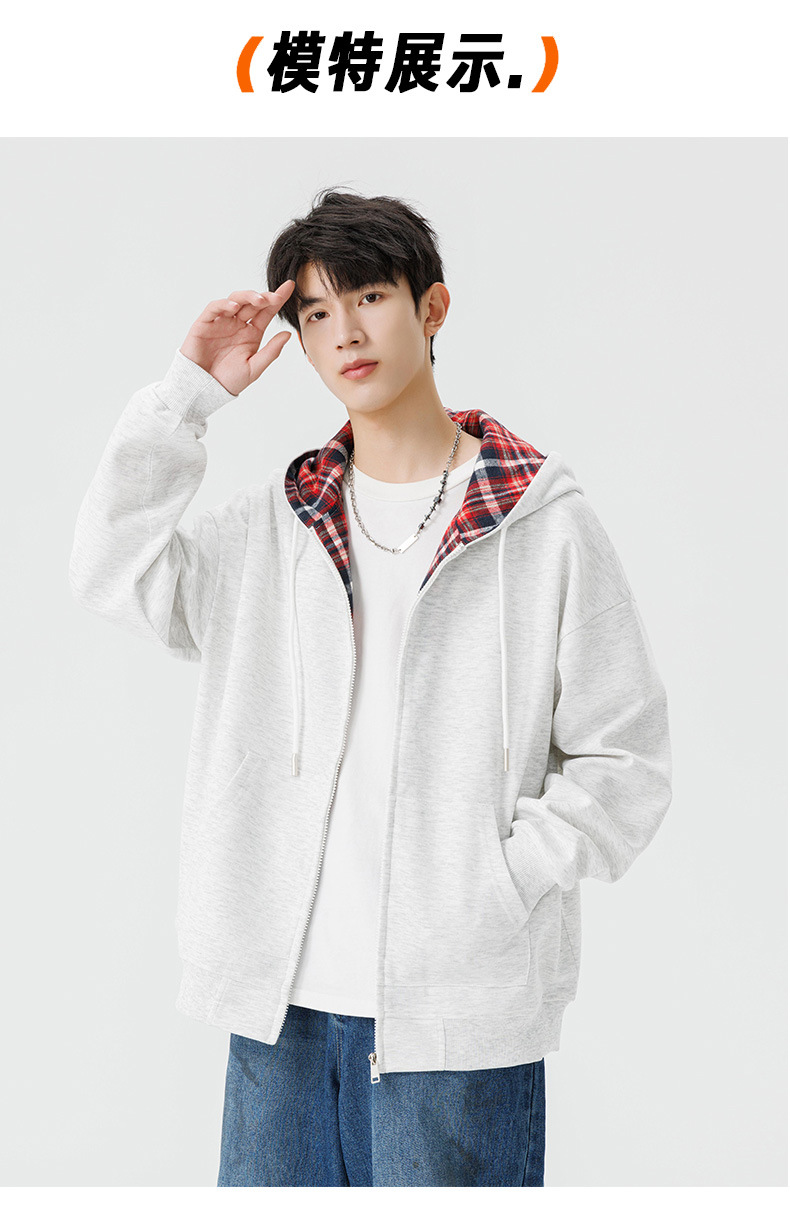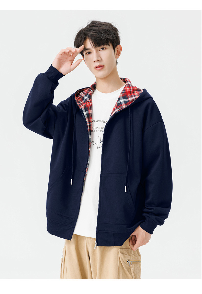 가을과 겨울 기모 두꺼운 격자 무늬 후드 스웨터 남성용 빈티지 따뜻한 폴라 지퍼 카디건 자켓 트렌디 브랜드 남성 의류스토어 가기