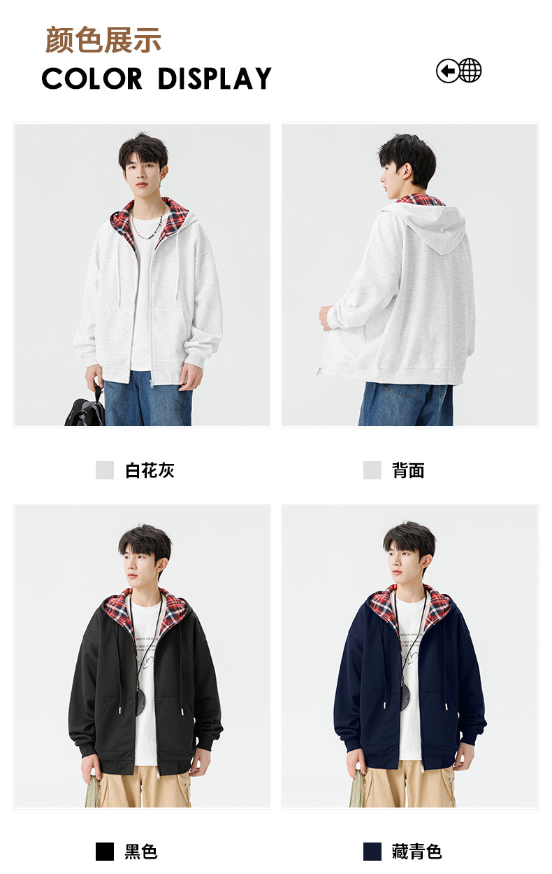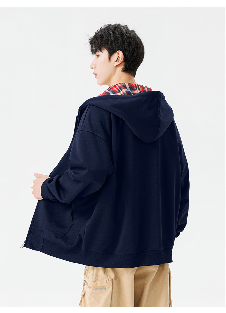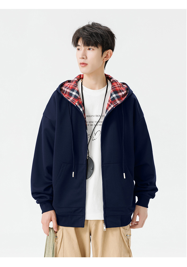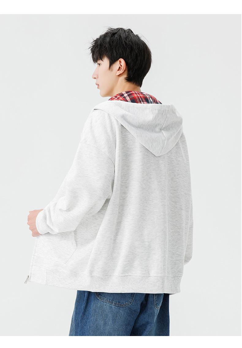 가을과 겨울 기모 두꺼운 격자 무늬 후드 스웨터 남성용 빈티지 따뜻한 폴라 지퍼 카디건 자켓 트렌디 브랜드 남성 의류스토어 가기