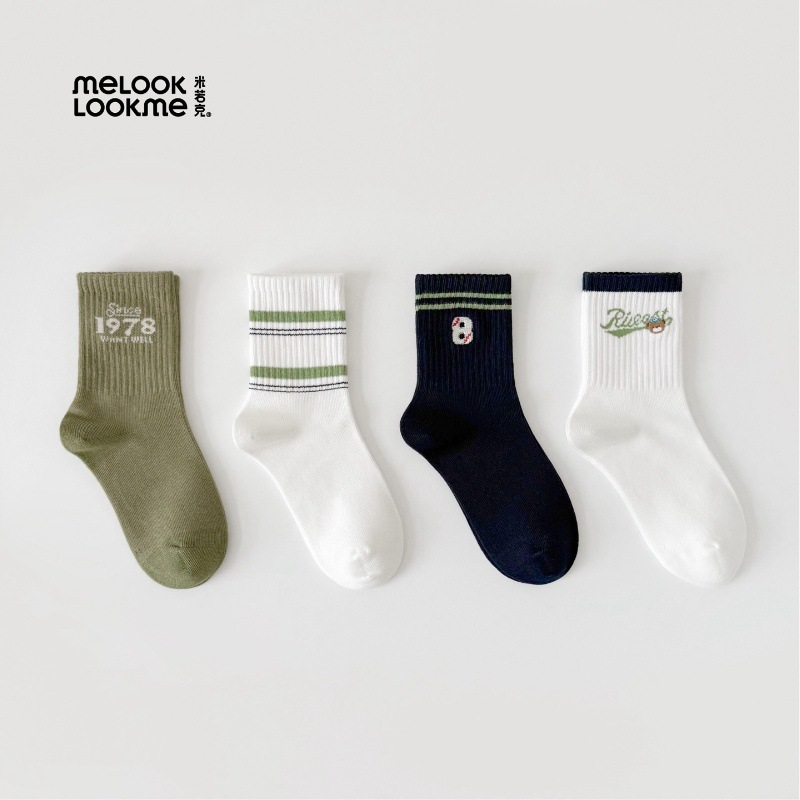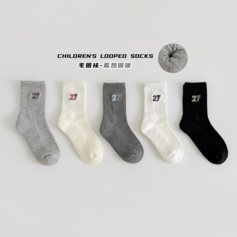 미로크 2025 가을 겨울 아동 양말 도매 한국 스타일 양말 학생용 짧은 양말 아기 중간 길이 무봉제 면 양말스토어 가기