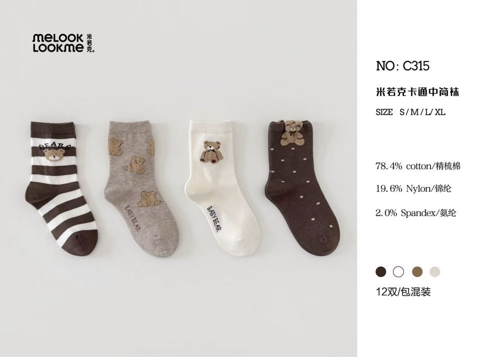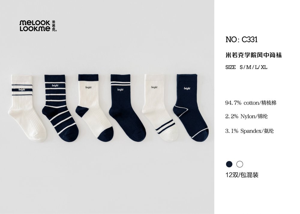 一包混色装/12双,整包起拿,不拆码