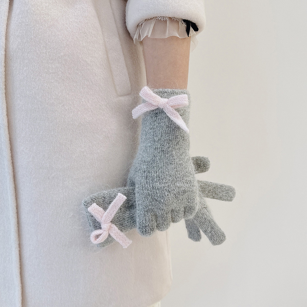 한국 스타일 토끼 헤어 장갑 여성용 귀여운 Bowknot Ins 트렌디 한 분할 손가락 니트 장갑 터치 스크린 따뜻한 겨울 새로운