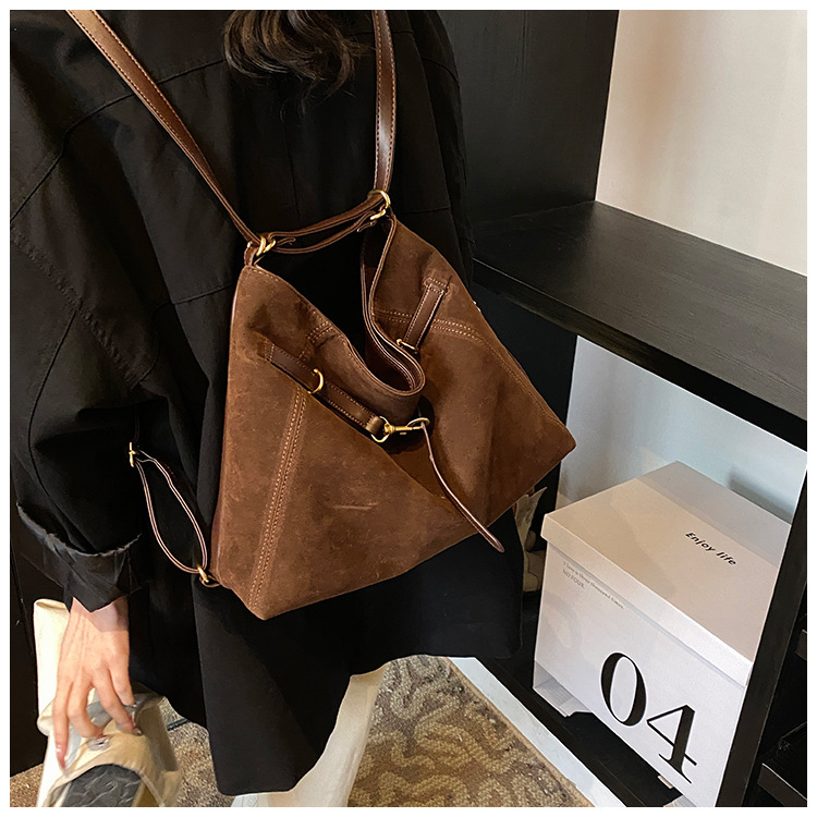 토트 백 스웨이드 빈티지 간단한 섬유 올 매치 배낭 대용량 다기능 통근 캠퍼스 가방 여성용스토어 가기
