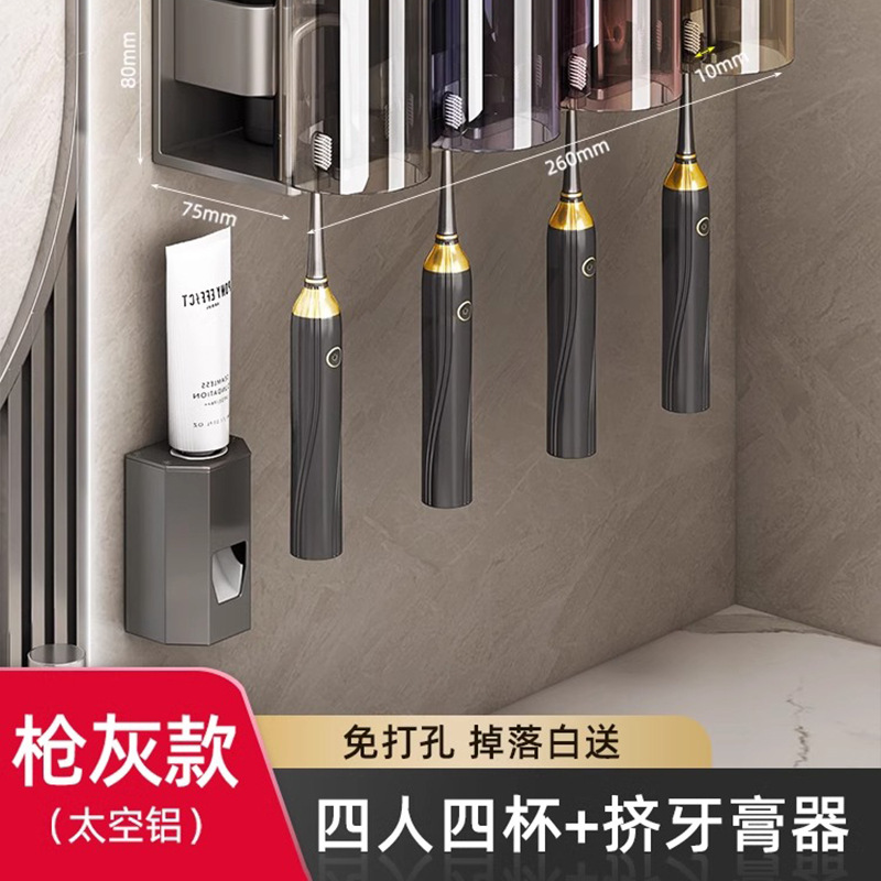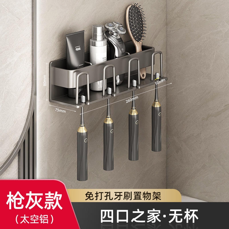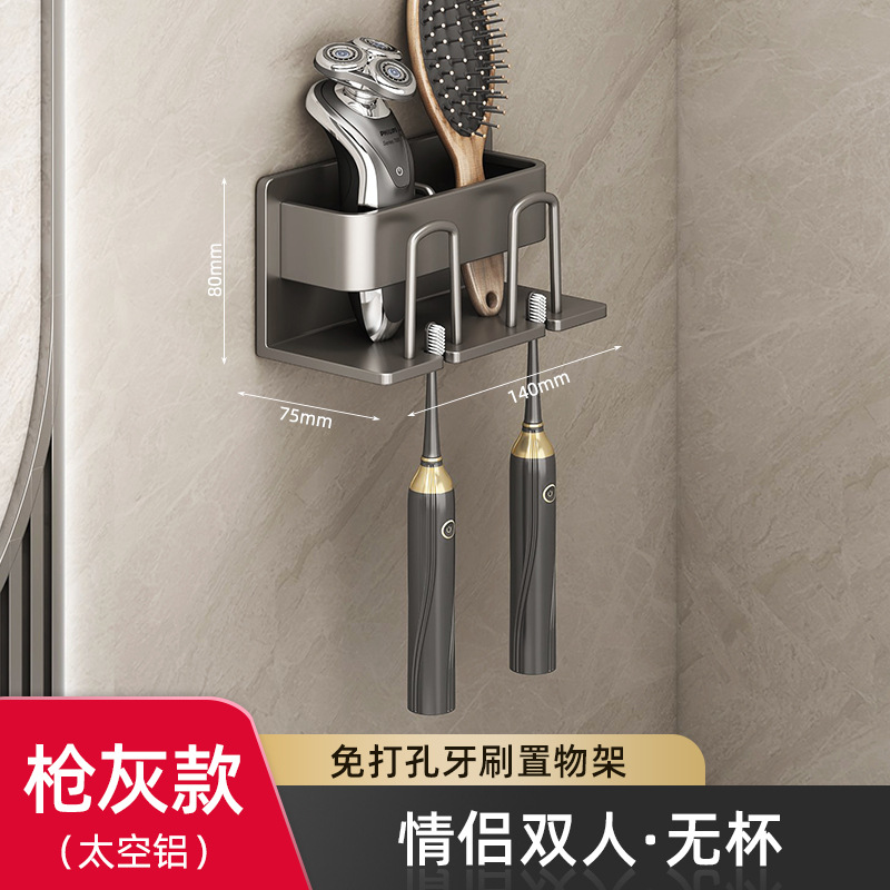 칫솔 랙 비 펀칭 건 그레이 화장실 마우스 워시 컵 브러쉬 컵 스토리지 벽걸이 형 전동 칫솔 랙