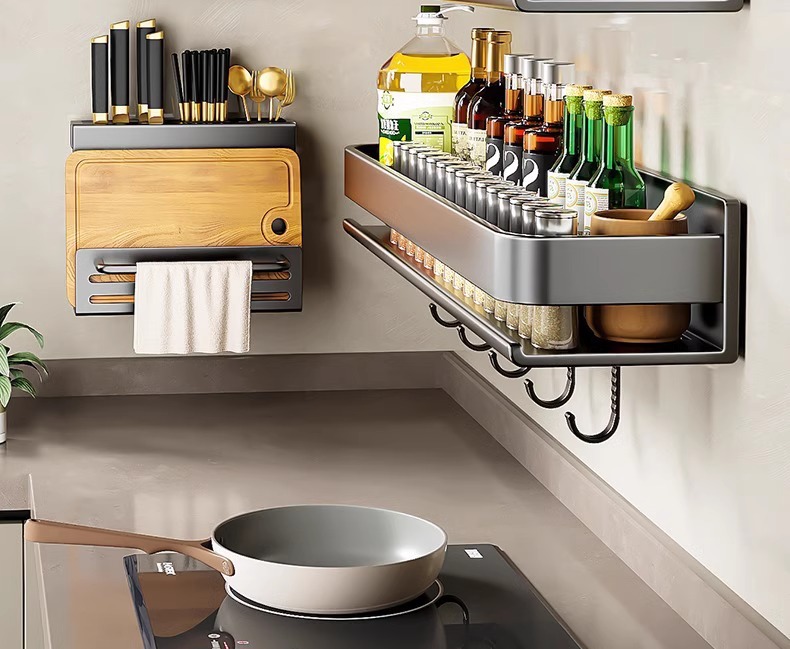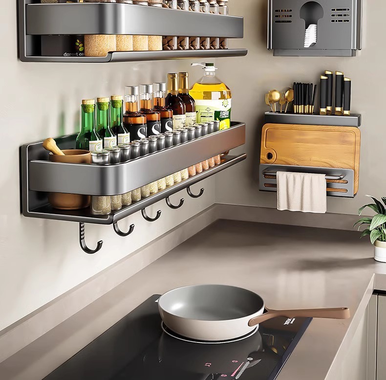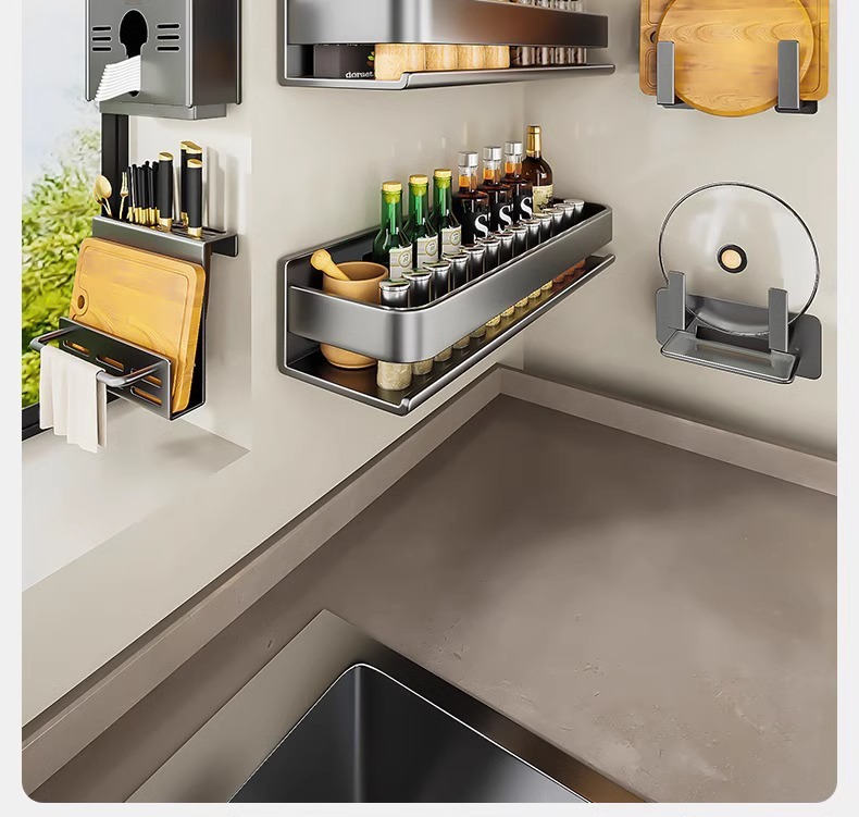 주방 보관 랙 대용량 조미료 랙 비 펀치 벽 가구 조미료 벽 다기능 보관 랙