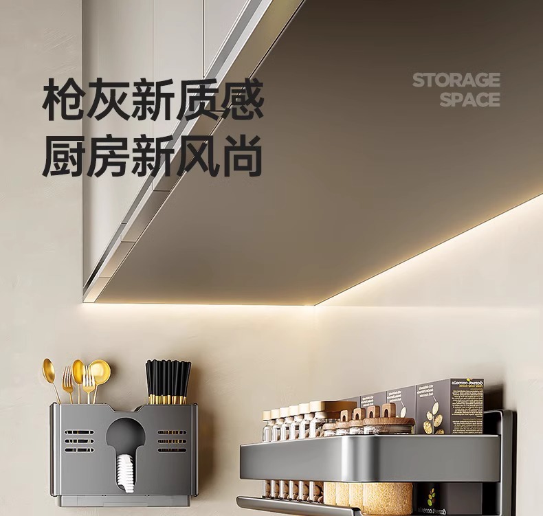 • 【40cm】후크가 달린 스파이스 랙-건 그레이