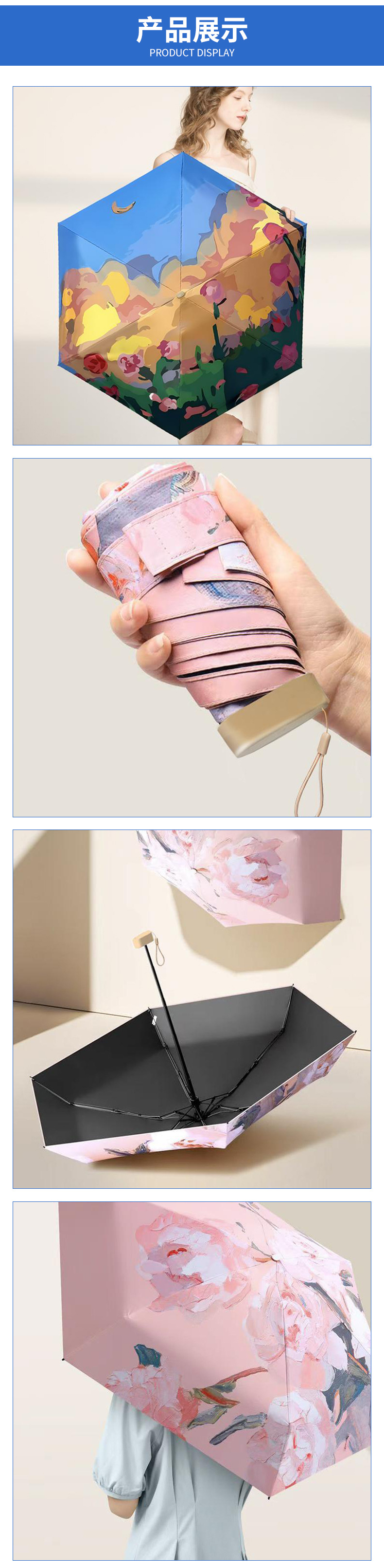 공장 재고 공급 소형 휴대용 차양 우산 햇빛과 비 이중 목적 비닐 태양 우산 여성의 UV 보호 우산스토어 가기