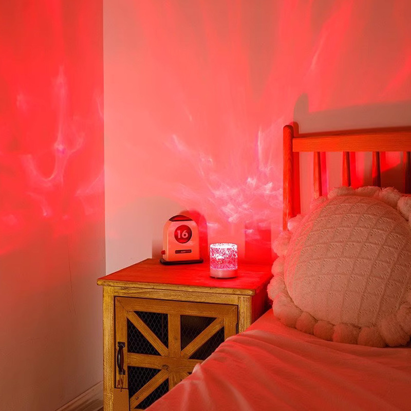 LED 동적 회전 물 리플 분위기 램프 물 패턴 침실 침대 옆 램프 낭만적 인 별이 빛나는 하늘 프로젝션 물 리플 테이블 램프