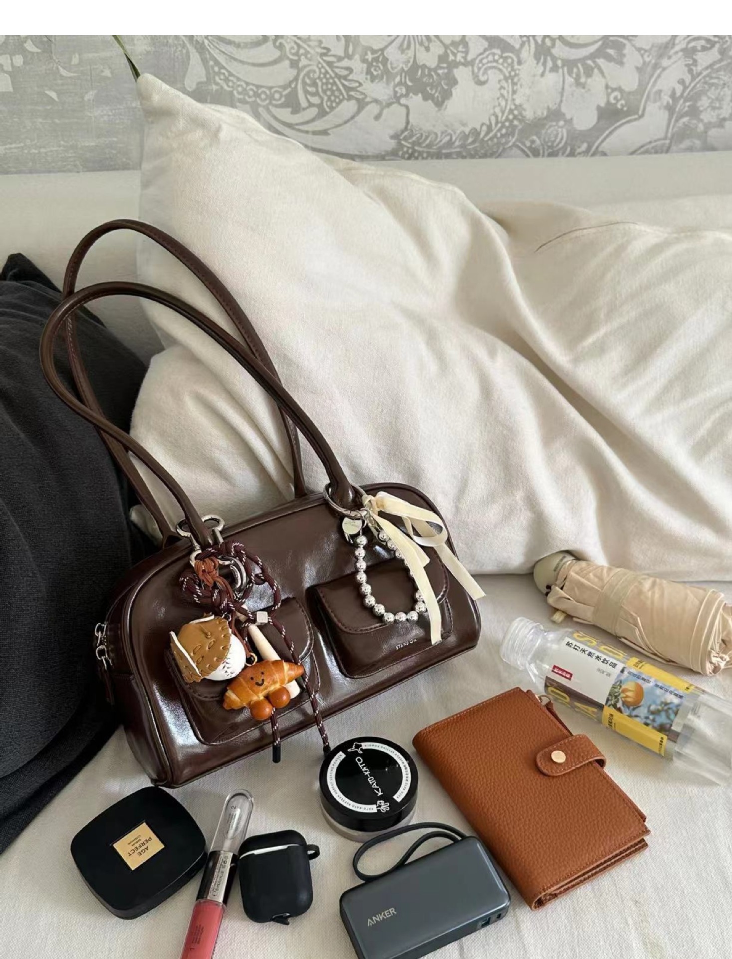 윤진과 같은 스타일의 가방 여성 2024 가을 겨울 새로운 한국어 기능 대용량 복고풍 볼링 휴대용 어깨 가방스토어 가기