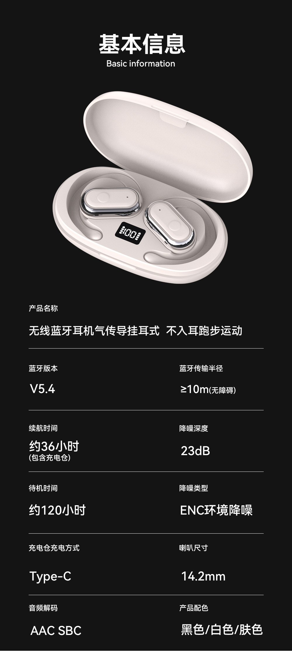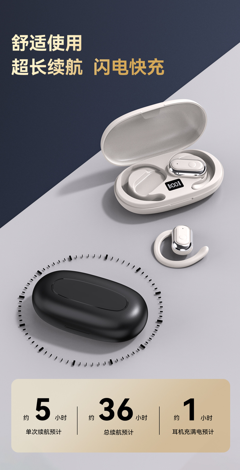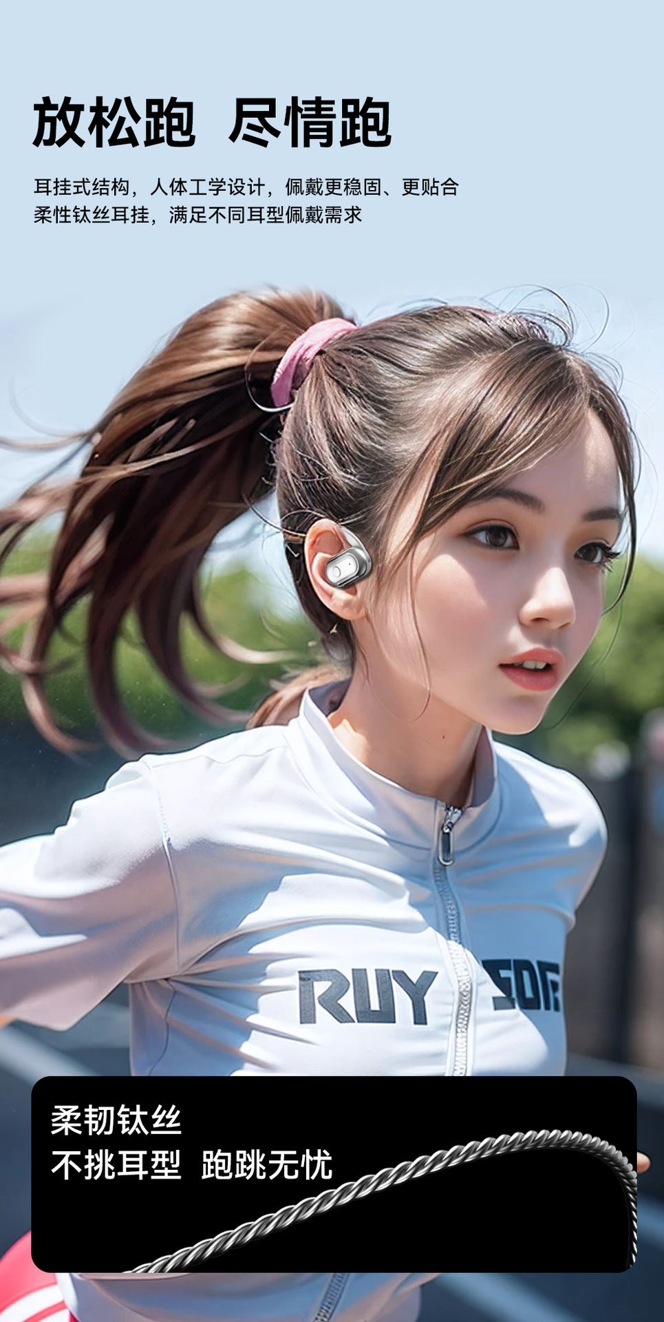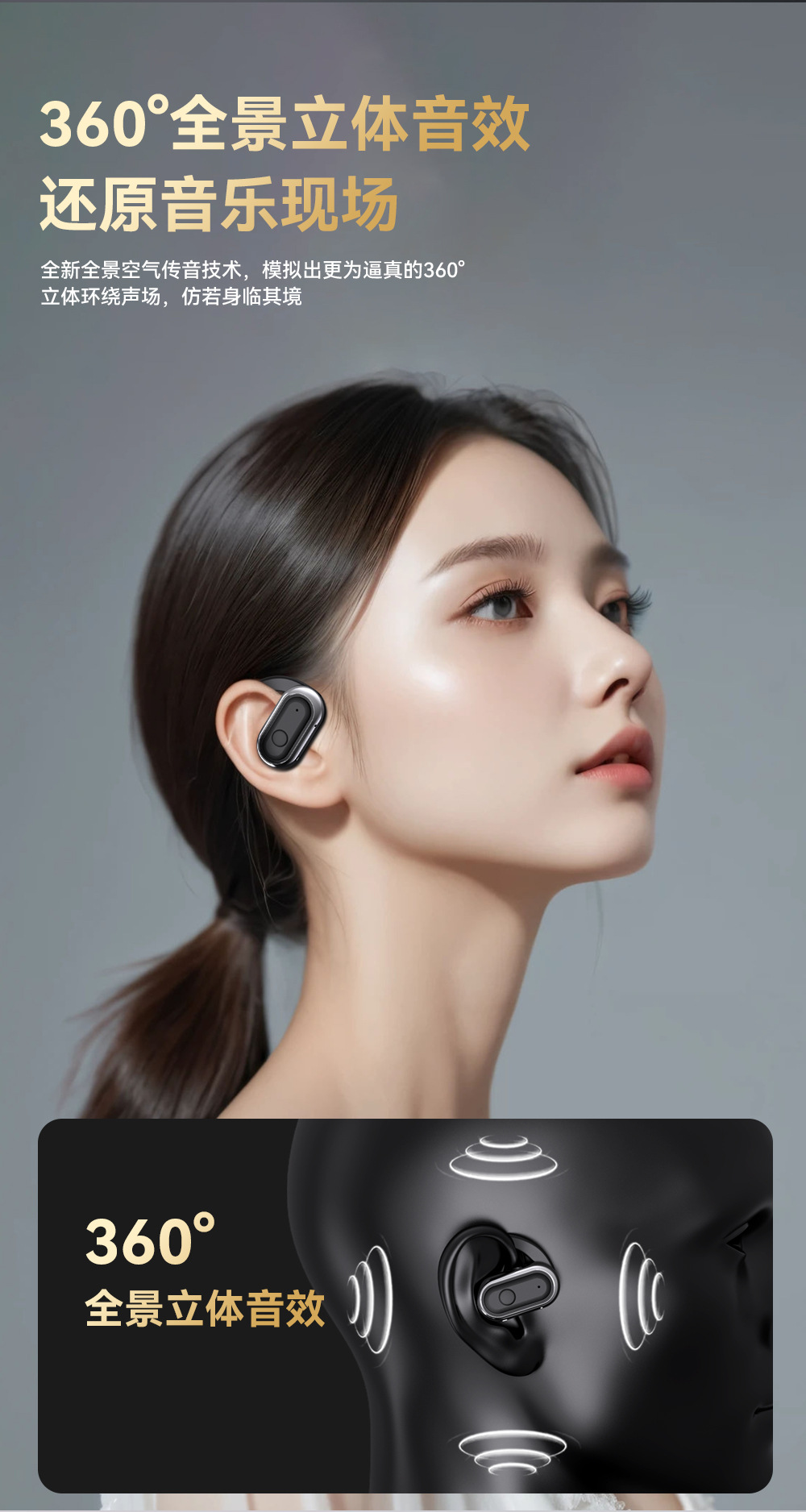 Mellassan 무선 블루투스 헤드셋 2024 새로운 공기 뼈 전도 무선 소음 감소 귀 매달린 헤드셋 스포츠 달리기스토어 가기